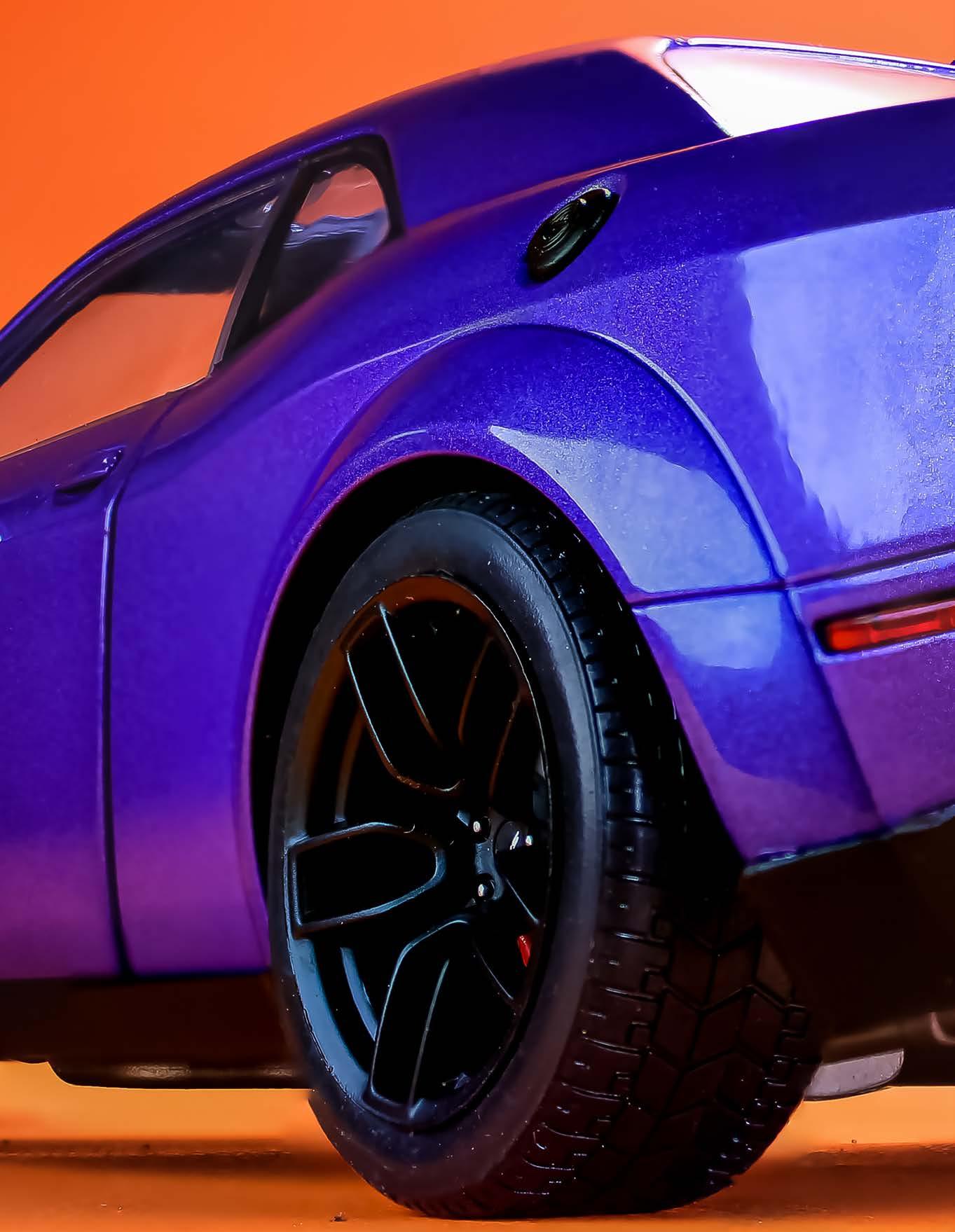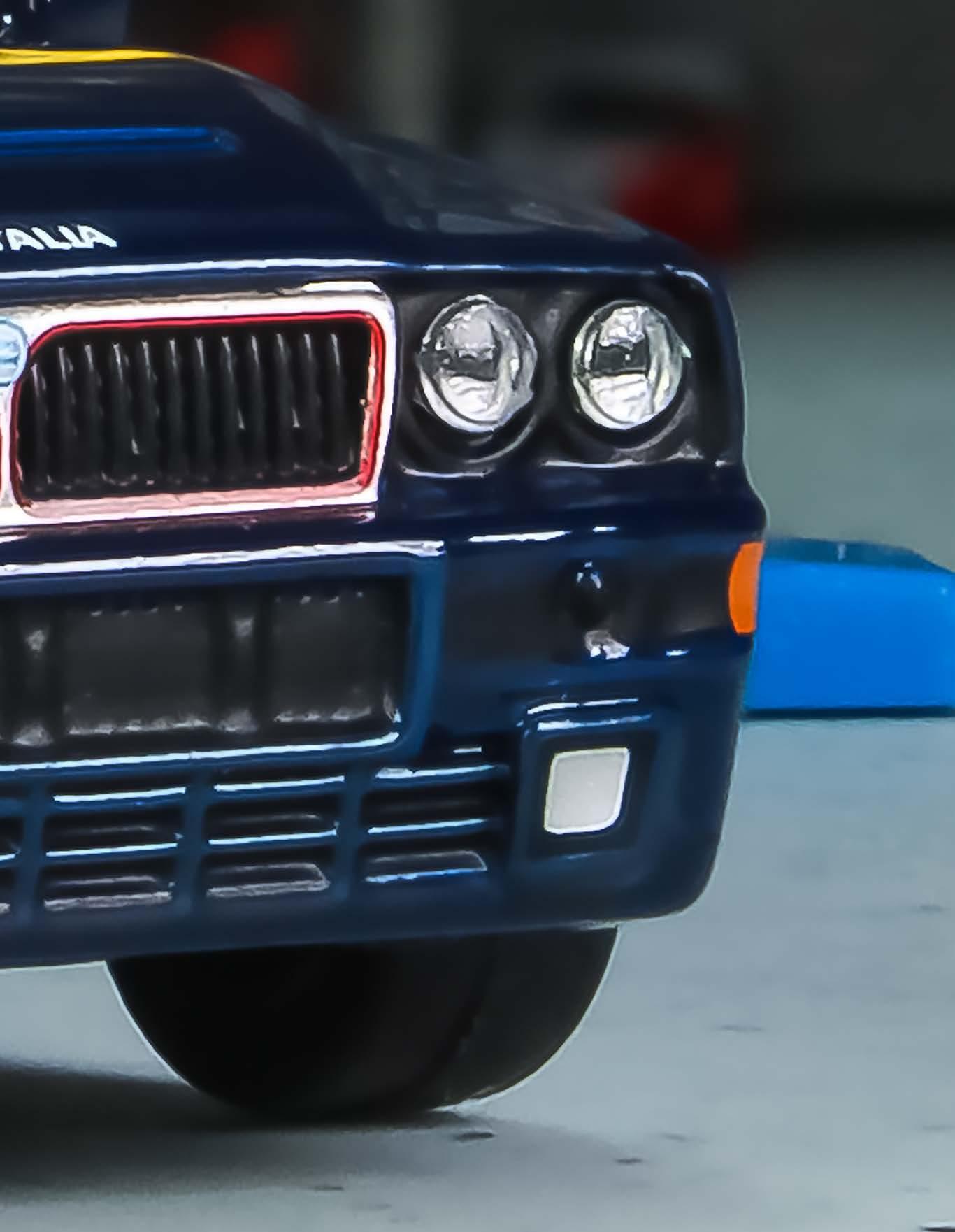 Rubber wheels wrapped around deep metal rims give the car a smooth roll and of course lovely stance, weight, and look. Realistic headlamps with a focus lens make you wonder for a few seconds about the amount of work that goes into getting those details at that level.