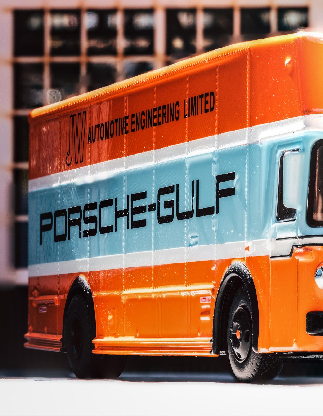 Patrick Pchalek focuses his lens on the 1:64 Renntrasporter Porsche-Gulf from Schuco.