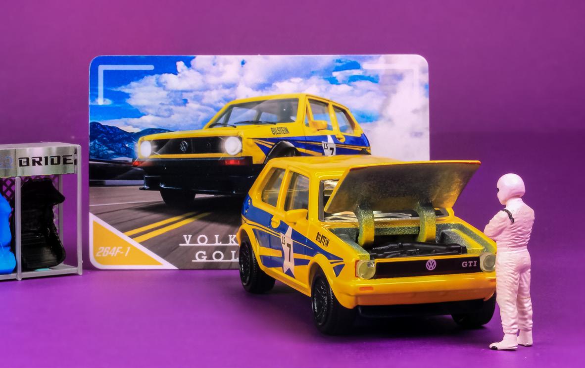 New to the range of VWs we have the famous hot hatch from the 80s in bright yellow and BILSTEIN branding. This is a lovely version of the GOLF sporting an opening engine hood and a plastic moulded engine inside. For a mainline, this is a great casting and has so much potential for the future.