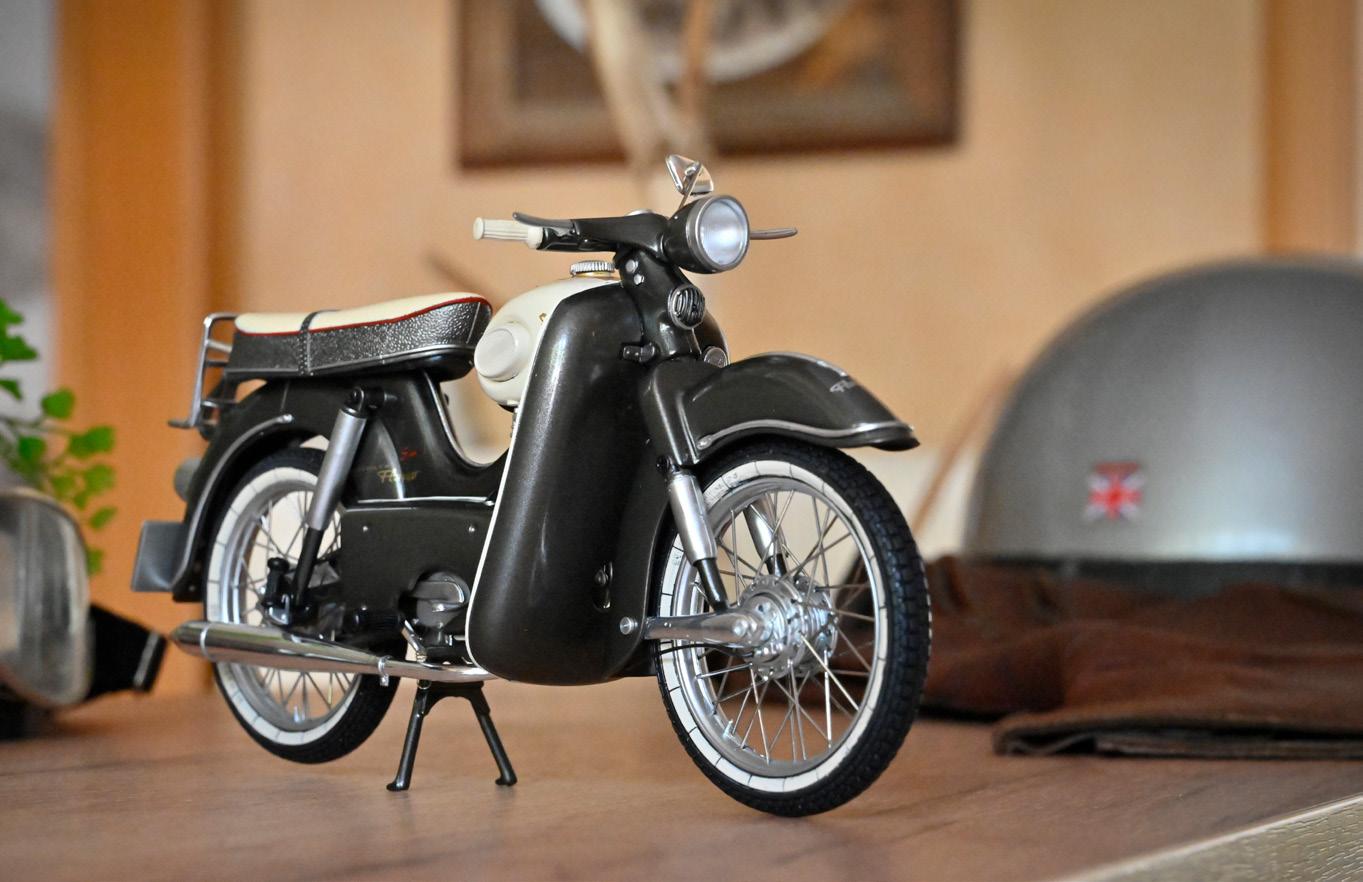 This is the 1965 model with it's 50cc, fan-cooled 2 stroke that had an amazing 5.2bhp and a 4-speed gear. The particular version also had a leg shield like other scooters of the era.