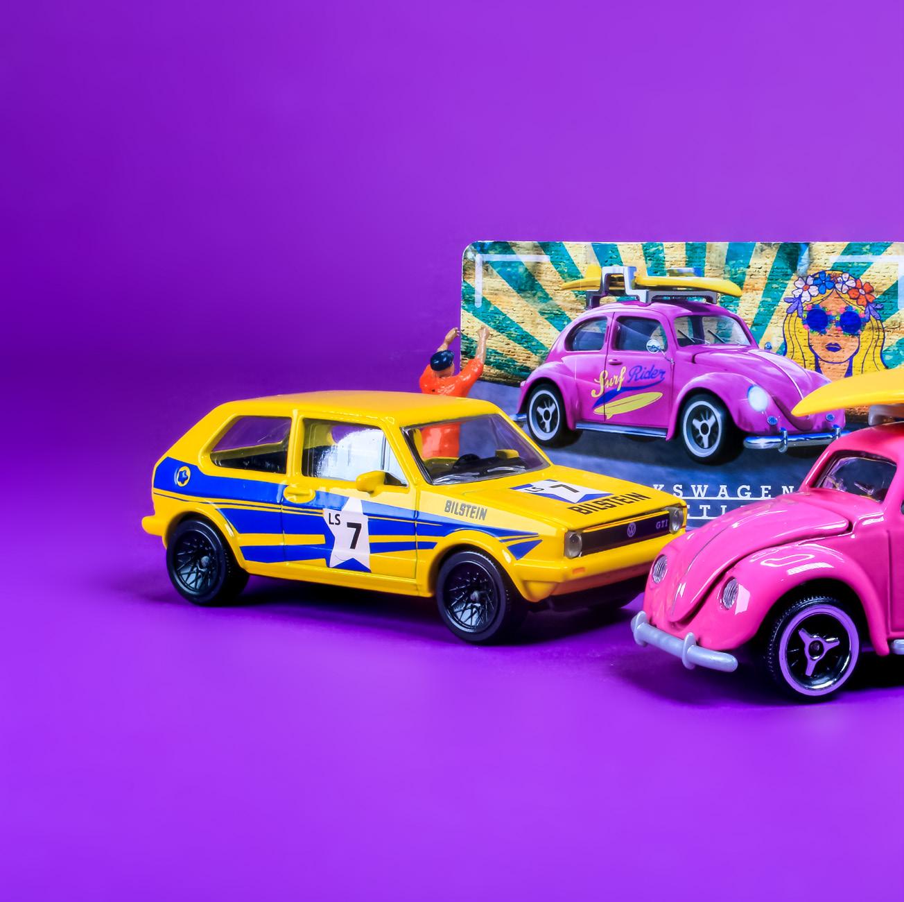 Like the famous ‘Street Beat’ fashion of the 80’s loud colours, this newly released set of VW models from Majorette will have you ordering the thickest luminous laces for your PUMA’s sneaks in seconds. Bring on the fun, bring on the bright colours, bring on the beach slogans and more importantly bring on these diecast models that look fantastic!