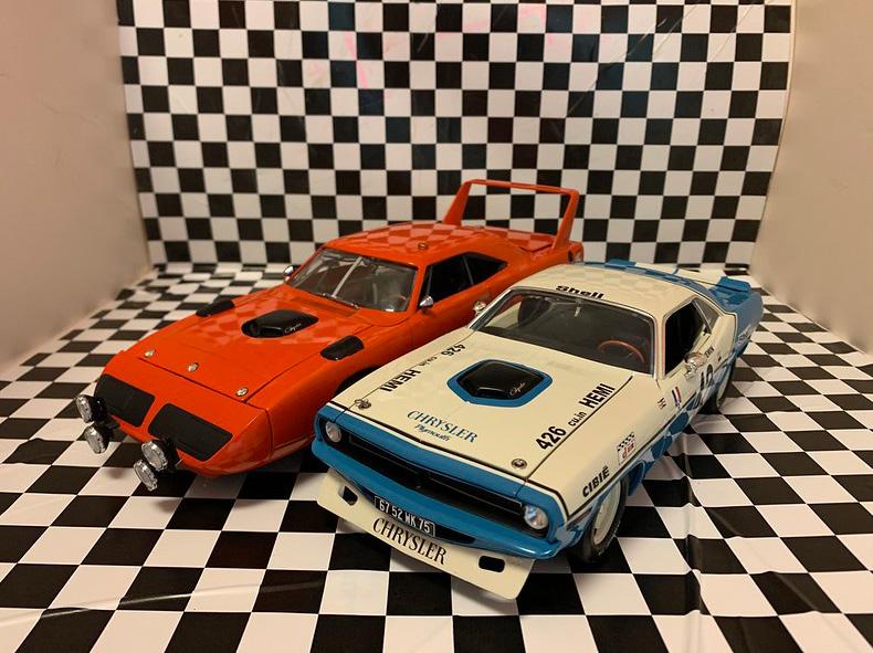 As donors for the project, Ertl already had a pretty decent Nascar Superbird, and there had been a series of them produced for Toys R’ Us in a solid orange with no racing livery. The chassis donor would be one of ACME’s Chemin HemiCuda’s.