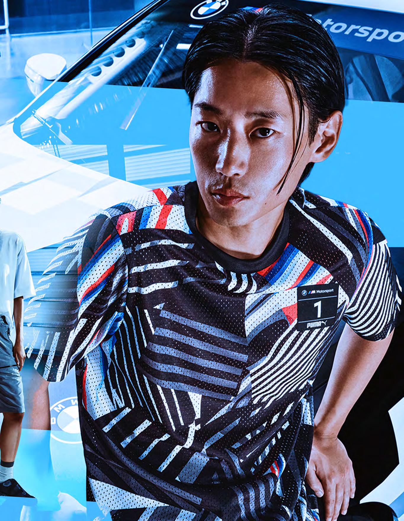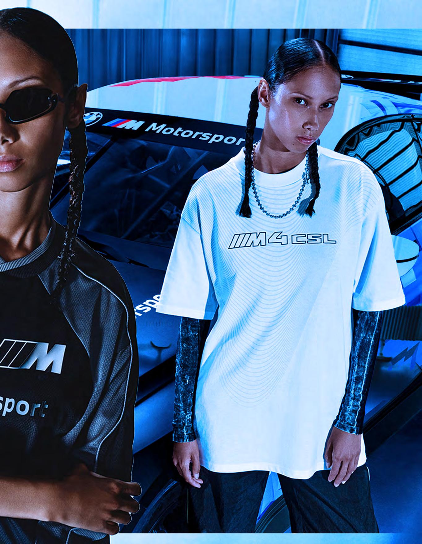 Inspired by the livery of the BMW M4, which is designed to get your heart racing, this collection features bold, dynamic graphics that reflect the unmistakable energy of the car. Silhouettes include hoodies, T-shirts, and shorts; clean lines and functional, everyday tech will keep wearers comfortable and stylish, whether they're hitting the track or navigating city streets.