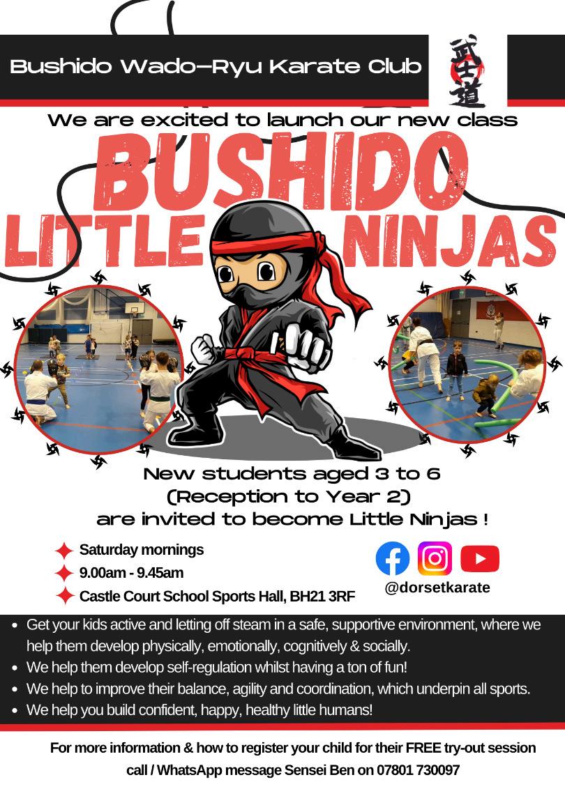 Karate: Mr Mills continues to run Karate & Self-Defence classes for children and adults aged 7 and up (Y3+) on Saturday mornings 9am–10:20am in the Sports Hall. For more information or to book a free try-out session, please contact him on bdemills@yahoo.co.uk or bmills@castlecourt.com. Please see the image for more details regarding the Little Ninjas sessions for Reception to Year 2 children.