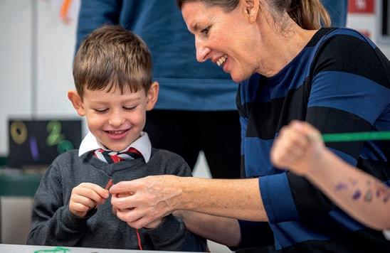 them. In September, we launched our new Character and Values Education (CAVE) programme based on the triple wellbeing principles of self-care, people-care and earthcare. Through this new programme, pupils have developed essential life skills, such as learning to ride their bikes safely on the road, first aid, sign language and sailing skills. They have also had the opportunity to help others by visiting a local Nursing Home, learning about the important work of charities such as the Foodbank and Children on the Edge, as well as taking part in fundraising activities such as the PrePrep Sponsored Walk which raised funds for the school charities (see back cover). Thanks to the creation of our new outdoor learning classroom, pupils have also been able to take full advantage of our woodland estate and enjoy learning outside and exploring nature.