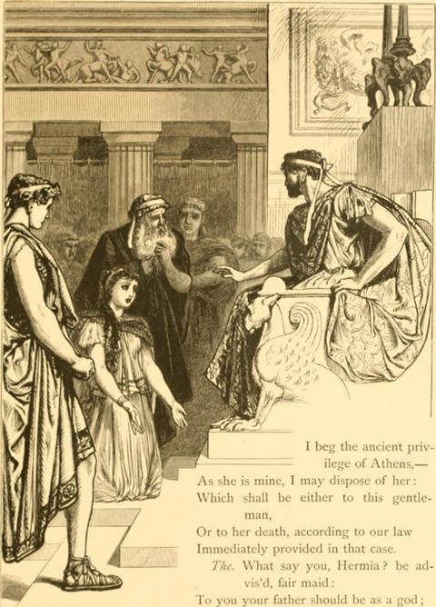 An informant in the palace claims that the Duke told Hermia that, “To you your father should be as a God, one that composed your beauties; ye, and one to whom you are but a form in wax by him imprinted, and within his power to leave the figure, or disfigure it. Demetrius is a worthy gentleman.” Hermia responded by addressing the Duke which shocked onlookers and apparently her father