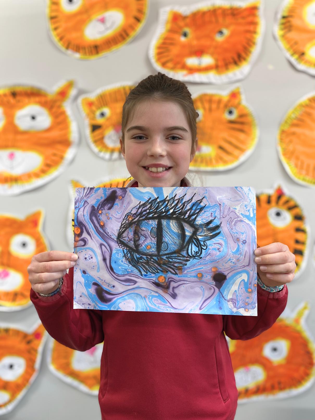Form IV is taking inspiration from Cressida Cowell’s novel ‘How to train your Dragon’ The children made many imaginative drawings of dragon eyes in their sketchbooks and selected their favourite for an outcome We made marbling paper for the background and drew the eye on top using charcoal pencils We will complete the project by making clay dragon eyes whichthechildrenareveryexcitedabout!
