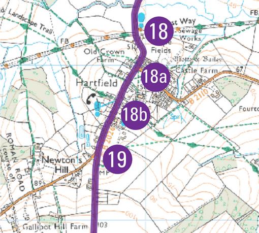 Point 18 is a right turn at a junction after a steep little climb into the village of Hartfield. This will be traffic controlled with STOP/GO signs but again please exercise caution. Points 18a and 18b are road pinch points which will both be traffic marshalled Point 18a is not your right of way but 18b is, as you exit the village.