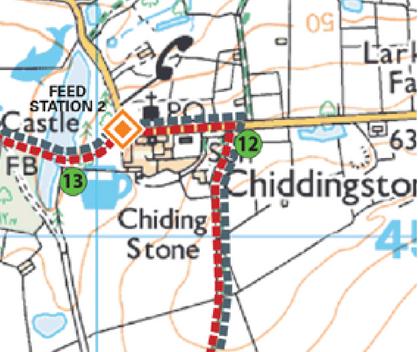 There will be 2 feed stations. The 1st feed station will be at 1.5K at the South East corner of Park Wood You will pass this at 1.5, 6.5, 13 and 19.5K. A 2nd feed station will be placed just inside the Castle gates by The Castle Inn in Chiddingstone High Street. This is 6K into the run. You will therefore pass this twice, once at 6K on your first lap and again at 16 5K on your second lap