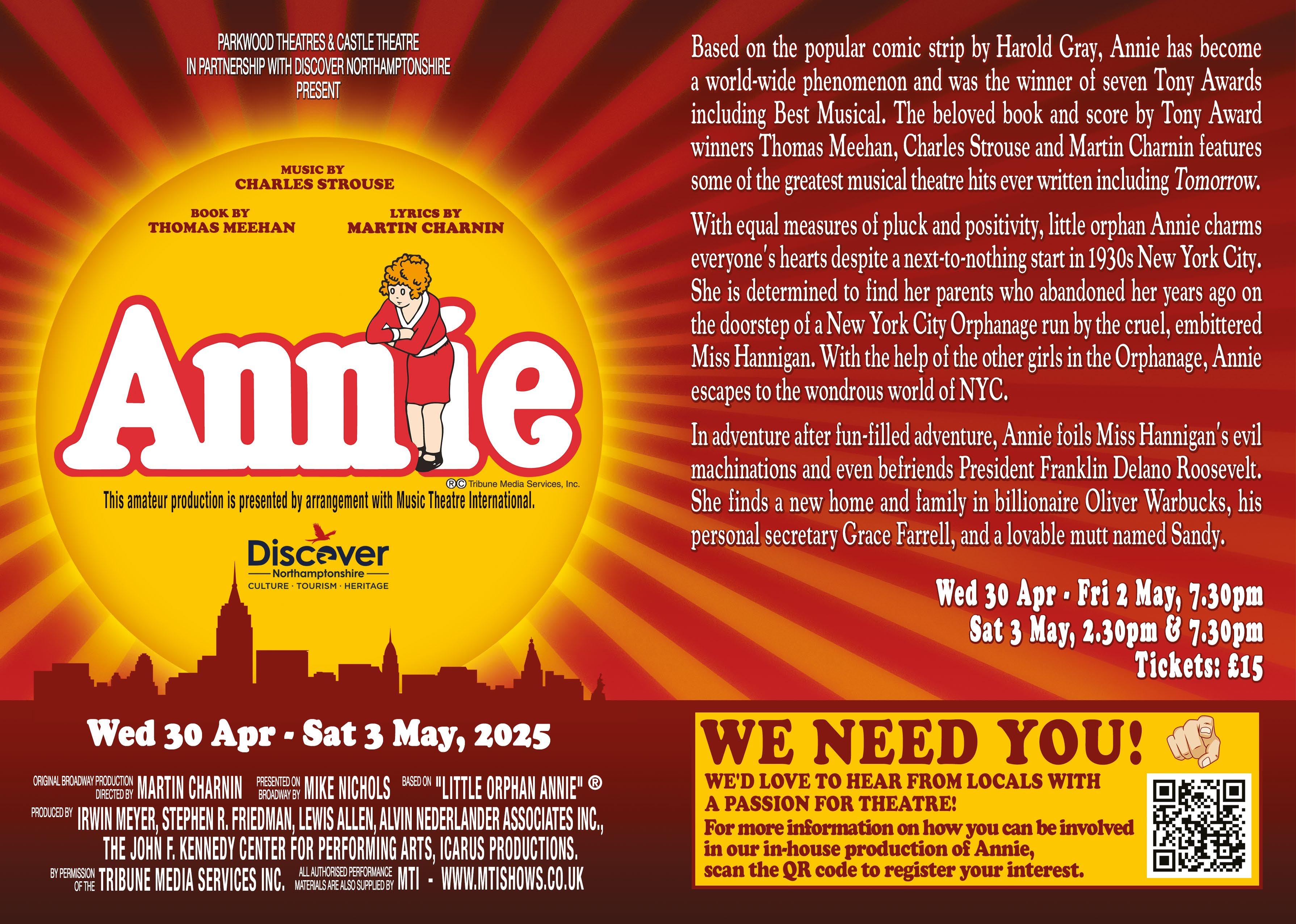 We will be celebrating this with our very own production of Annie (as generously sponsored by Discover Northamptonshire) as a part professional, part community mix in homage to our humble beginnings as a community theatre, opening its doors 30 years ago with a community version. If you’d like to get involved, you can find more information on pages 22- 23.