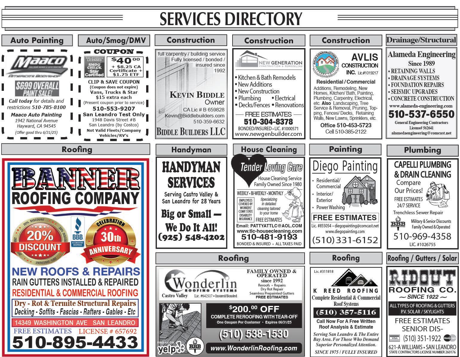 You can run a classified ad for a little as $30 a week. Your ad runs in both of our newspapers, the Castro Valley Forum on Wednesday and the San Leandro Times on Thursday. You can also save $5 by placing your ad on our website at castrovalleyforum.com or sanleandrotimes.com. We’ll call you for your credit or debit card info for payment. To place an ad by phone call Patrick Vadnais at 510-614-1560, Mon-Fri 9 a.m. - 1 p.m.