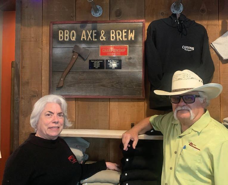 2023, a four-person team from Pete’s Ace Hardware took the axe-throwing prize. Last year, a team from B.A. Morrison took the top prize. To commemorate the winners, Rotary contracted the creation of the trophy, which currently sits on the wall of Canyons BBQ.