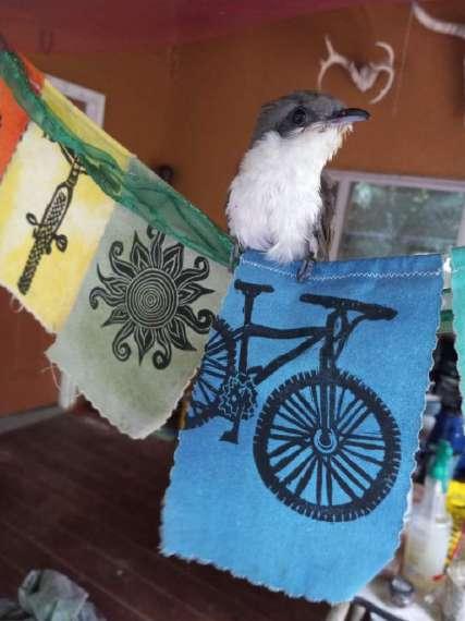 Since Puff wasn’t old enough to feed on his own, yet wanted to try out his wings, Puff would end up out in the woods but not independent yet. These where the most challenging stages of the process. The summer went faster than usual because our lives, already busy as pioneer off grid on solar, glass artists, we also committed to raising a wild bird.