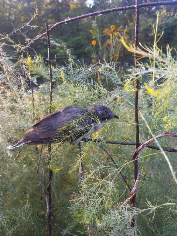 By mid October we saw a mature Cuckoo next to Puff. This bird seemed to be communicating with puff, even showed his talents at catching wild caterpillars. I have a feeling that new buddy of Puffs was his mom or dad and together they must have gone on their migration flight. What a good ending the summer of 2023 had for our homestead. It had been an honor and a bit of a miracle. We might see Puff again this year. I envision Puff flying to our garden and with the sounds of a totally mature Cuckoo Puff will say to us…
