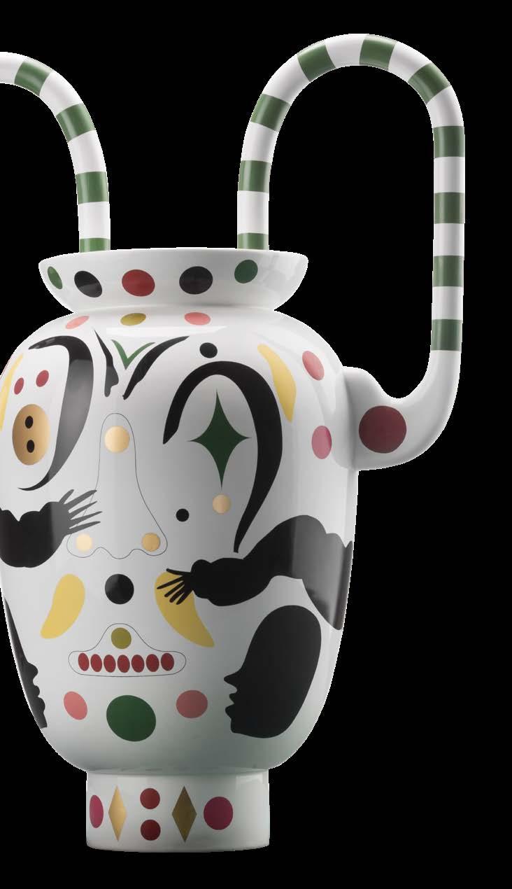 The collection welcomes Maestro, the new ceramic vase decorated with a clown-juggler.