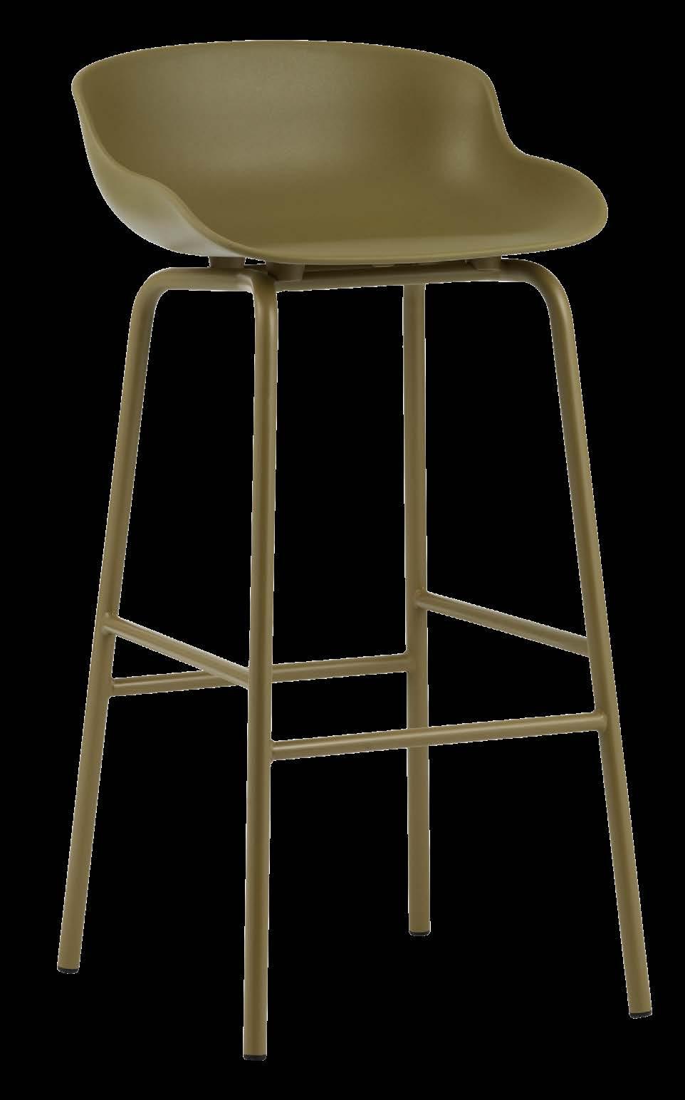 The seat series expands even with barstools. Here with polypropylene shell, in Olive colour.