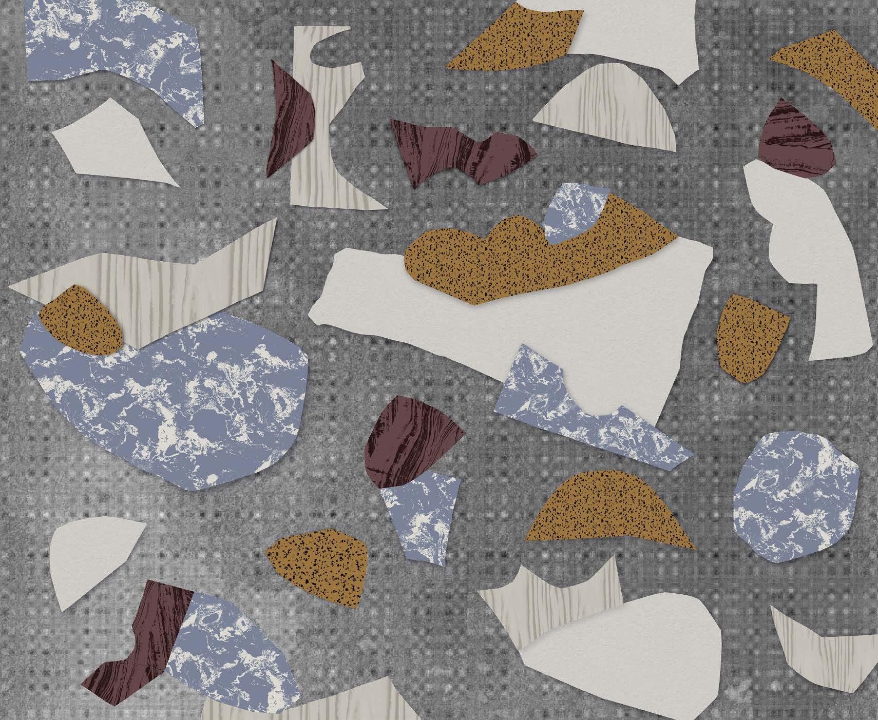 A joyful materico effect for this wallpaper, with a multi-pattern lively cutouts decoration.
