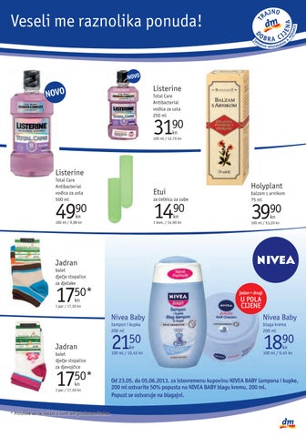 Od 23.05. do 05.06.2013. za istovremenu kupovinu NIVEA BABY šampona i kupke, 200 ml ostvarite 50% popusta na NIVEA BABY blagu kremu, 200 ml. Popust se ostvaruje na blagajni.