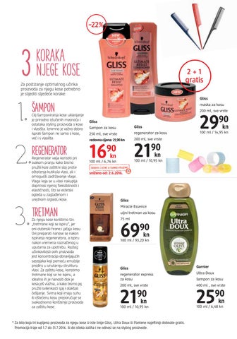 * Za bilo koja tri kupljena proizvoda za njegu kose iz iste linije Gliss, Ultra Doux ili Pantene najeftiniji dobivate gratis. Promocija traje od 1.7 do 31.7.2016. ili do isteka zaliha i ne odnosi se na styling proizvode.