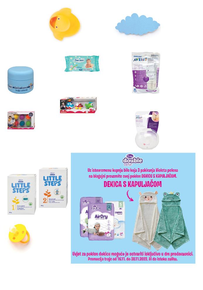 * Proizvod se ne nalazi u svim dm prodavaonicama. NOVO NOVO NOVO NOVO Becutan dječja krema za djecu, 100 ml 2590 kn 1 l / 259,00 kn 3,44 € 1 l / 34,38 € DOBRE CIJENE od 11.2022. 25,90 kn Becutan vlažne maramice 72 kom. 1490 kn 1 kom. / 0,21 kn 1,98 € 1 kom. / 0,03 € DOBRE CIJENE od 7.2022. 14,90 kn Avent vrećice za pohranu mlijeka, 25 kom. 6490 kn 1 kom. / 2,60 kn 8,61 € 1 kom. / 0,35 € DOBRE CIJENE od 11.2022. 64,90 kn Avent štitnik za bradavice 2 kom. 7990 kn 1 kom. / 39,95 kn 10,60 € 1 kom. / 5,30 € DOBRE CIJENE od 5.2022. 79,90 kn edushape* Sensory loptice, 6 kom. 13990 kn 1 kom. / 23,32 kn 18,57 € 1 kom. / 3,10 € DOBRE CIJENE od 9.2022. 139,90 kn edushape* Push 'n' Pull set vozila 3 kom. 9990 kn 1 kom. / 33,30 kn 13,26 € 1 kom. / 4,42 € DOBRE CIJENE od 9.2022. 99,90 kn Nestlé* Little Steps zamjenska mliječna formula 1 i 2 500 g 6190 kn 1 kg / 123,80 kn 8,22 € 1 kg / 16,43 € DOBRE CIJENE od 10.2022. 61,90 kn BEBE