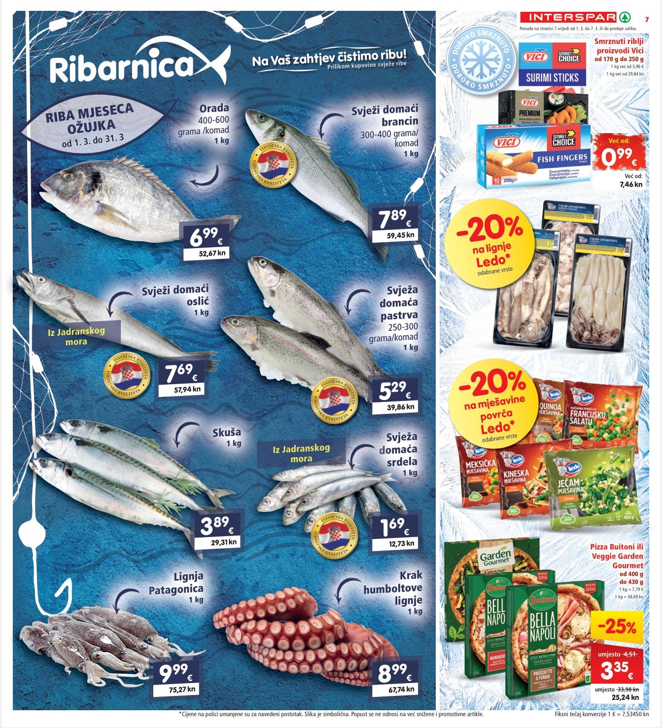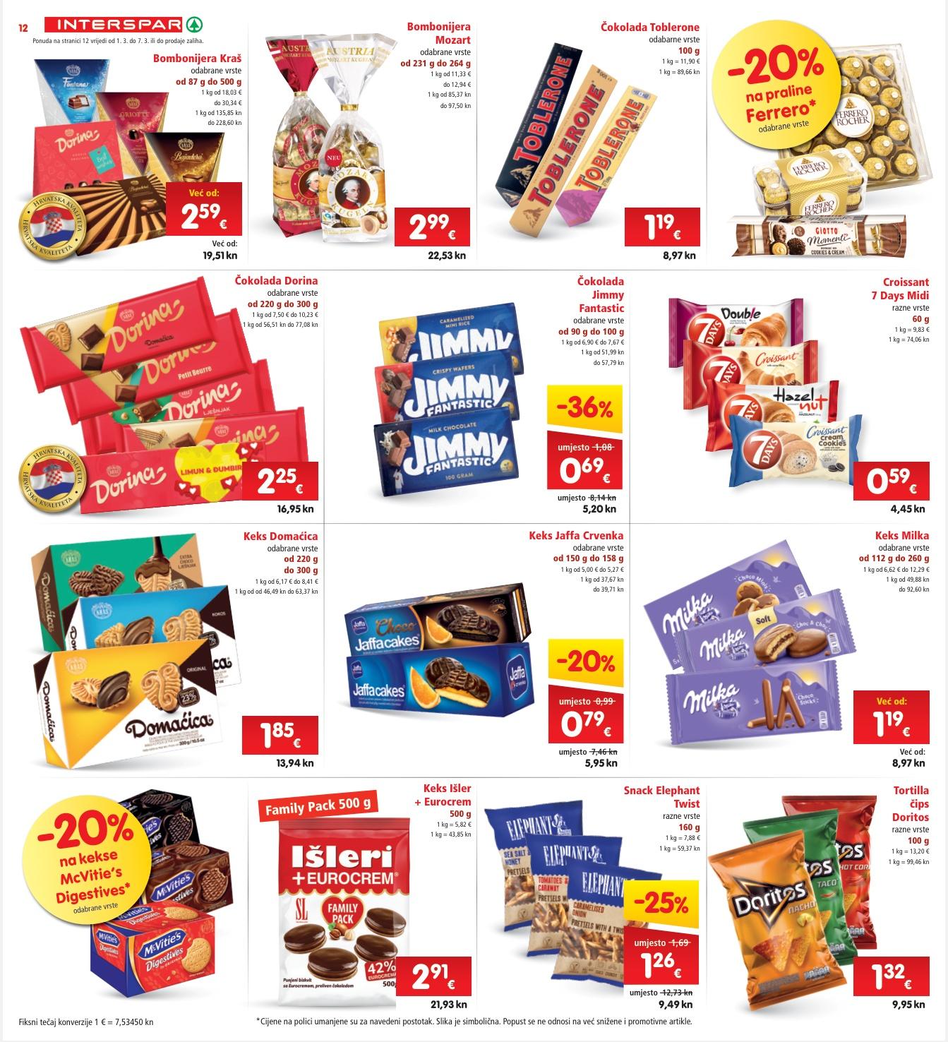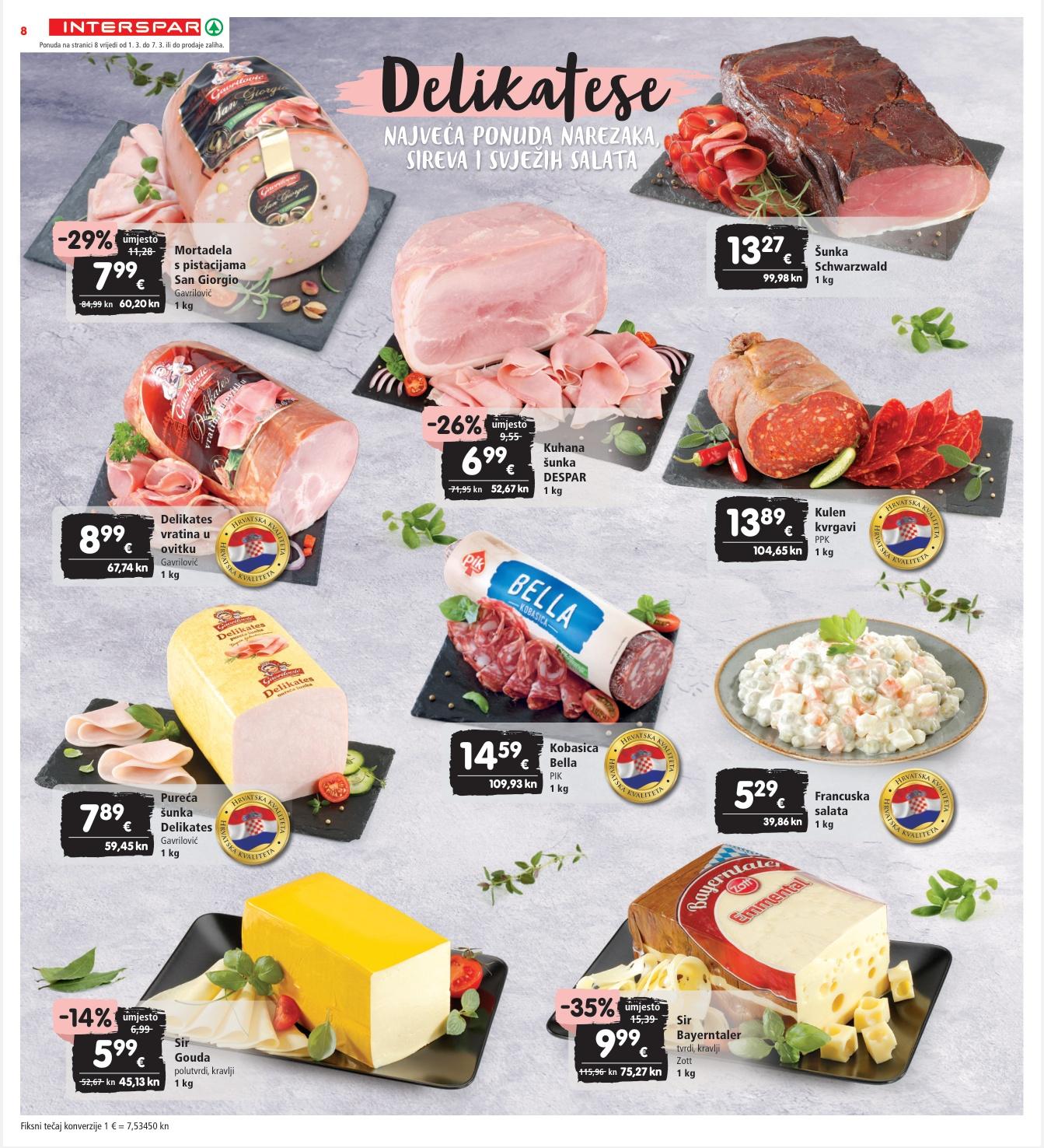 odabrane vrste Hrvatskakvalite t a H r vatskakvaliteta Hrvatskakvalite t a H r vatskakvaliteta Hrvatskakvalite t a H r vatskakvaliteta Hrvatskakvalite t a H r vatskakvaliteta Hrvatskakvalite t a H r vatskakvaliteta 7,46 kn umjesto 9,95 kn 0 99 € umjesto 1,32 -25% -34% -53% Tuna salata Rio Mare razne vrste 160 g 1 kg = 12,44 € 1 kg = 93,73 kn Namaz Lino Lada razne vrste 650 g 1 kg = 6,45 € 1 kg = 48,60 kn ili 700 g 1 kg = 5,99 € 1 kg = 45,13 kn 31,57 kn umjesto 47,92 kn 4 19 € umjesto 6,36 14,99 kn umjesto 31,95 kn 1 99 € umjesto 4,24 Sardina Eva povrće umak ocijeđena masa 58 g ili u biljnom ulju ocijeđena masa 81 g 115 g 1 kg od 12,22 € do 17,07 € 1 kg od 92,07 kn do 128,61 kn 18,76 kn umjesto 37,97 kn 2 49 € umjesto 5,04 -50% 14,99 kn Već od: 1 99 € Već od: 10,47 kn 1 39 € 5,20 kn 0 69 € 43,62 kn 5 79 € -30% na pasiranu rajčicu DESPAR* razne vrste 690 g -40% na tjesteninu i umake Barilla* odabrane vrste Ponuda na stranici 11 vrijedi od 1. 3. do 7. 3. ili do prodaje zaliha. 11 Fiksni tečaj konverzije 1 € = 7,53450 kn *Cijene na polici umanjene su za navedeni postotak. Slika je simbolična. Popust se ne odnosi na već snižene i promotivne artikle. 7,46 kn 0 99 €