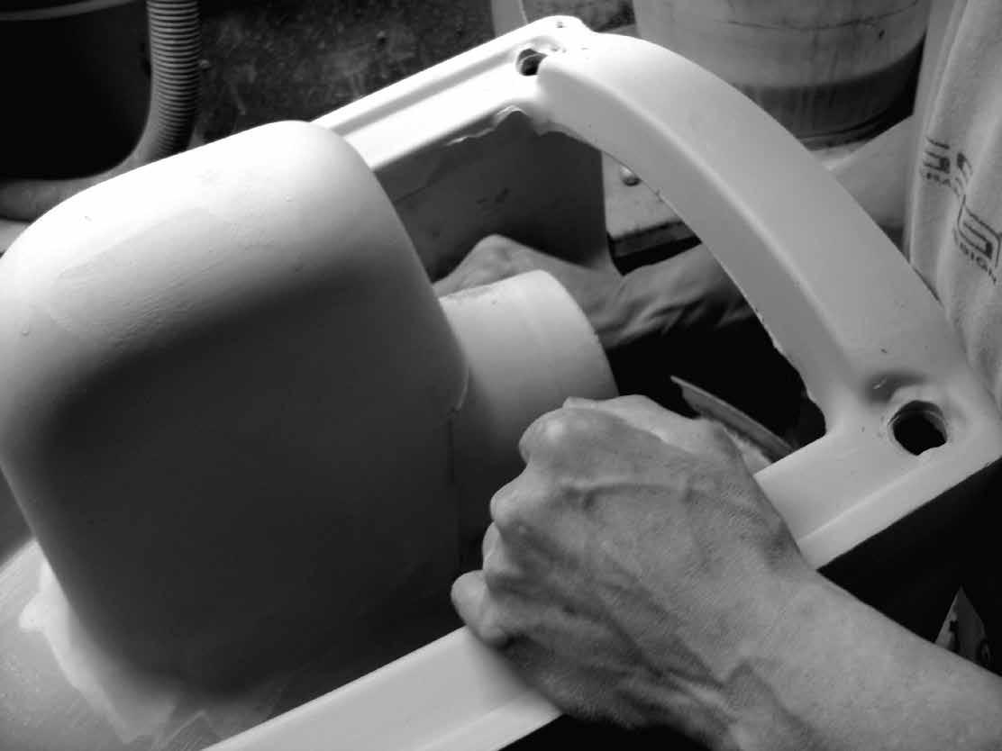 The first stage of finishing is curated by expert masters that, manually, remove all imperfections due for example to excess dough in the joints between the pieces of the mold or other causes in the modeling process.