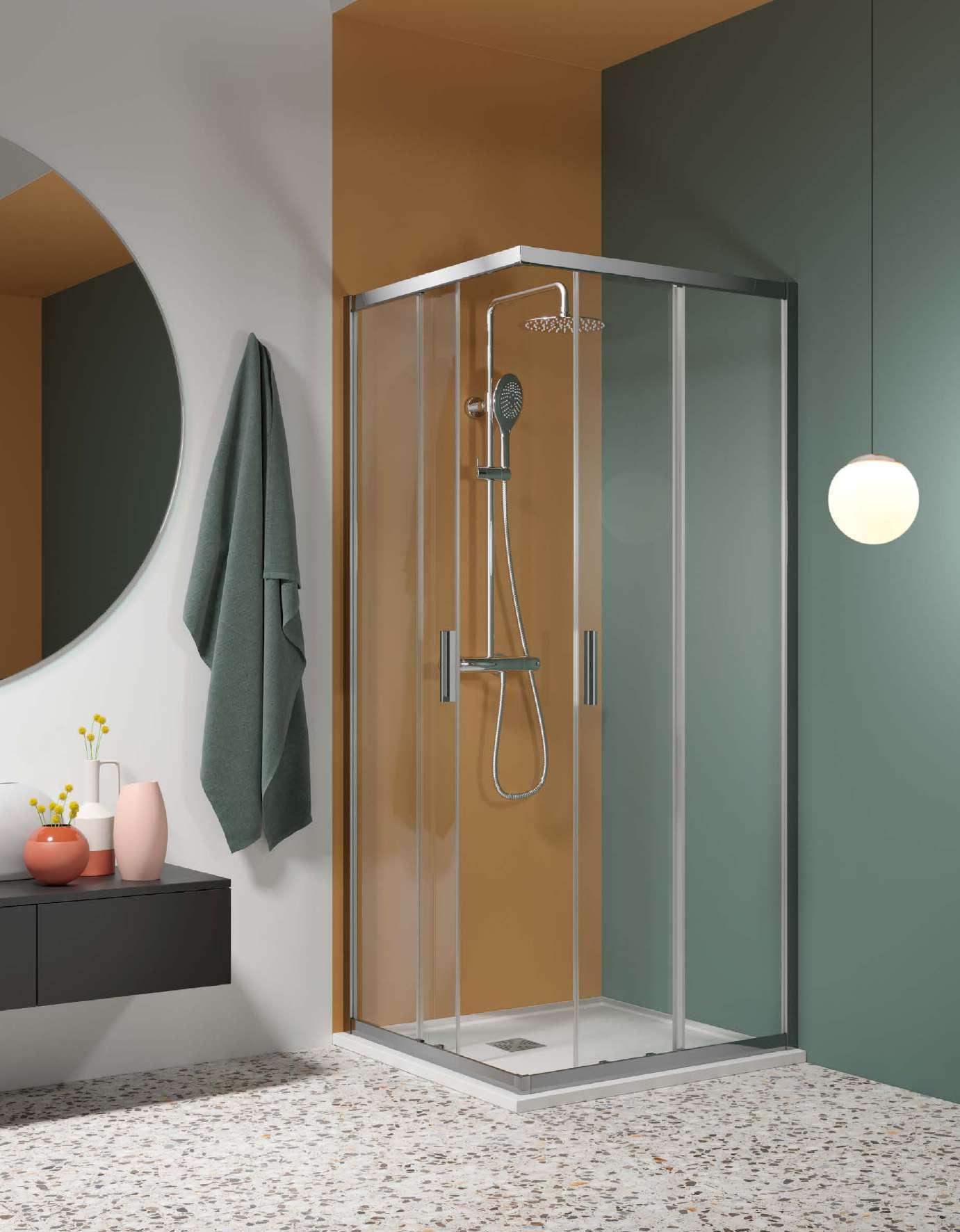 Disponibile in due tipologie di installazione, ad angolo e a nicchia, garantisce sicurezza e perfetta tenuta con un’altezza di 2000 mm. L’apertura e la chiusura Soft-Close garantiscono totale sicurezza all’utente. Può essere installato su piatti doccia tradizionali.