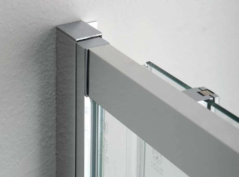 I profili parete sottili in alluminio cromo, le maniglie in lega cromate eleganti e le cerniere in ottone cromato minimalistiche sono perfettamente equilibrate e donano alle cabine doccia un look unico.