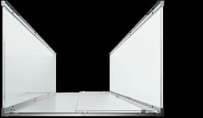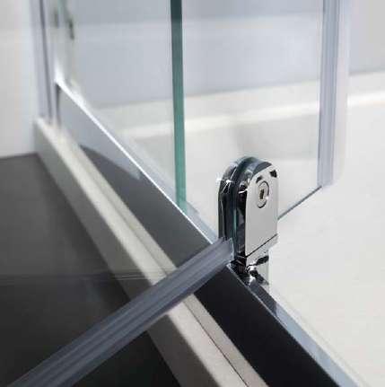 I modelli con ante scorrevoli sono dotate del sistema di sgancio rapido per facilitare la pulizia e del sistema di scorrimento su ruote in nylon con cuscinetti a sfera per una migliore scorrevolezza. Sono testati per durare nel tempo (10.000 aperture e 10.000 chiusure). Tutte le ante si possono regolare in altezza e inclinazione.
