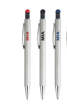 Penna a sfera touch in alluminio anodizzato, disponibile in più colori, rivestita con vernice nera per esaltare al massimo la tonalità di colore ottenuta con l’incisione a laser. Meccanismo a scatto