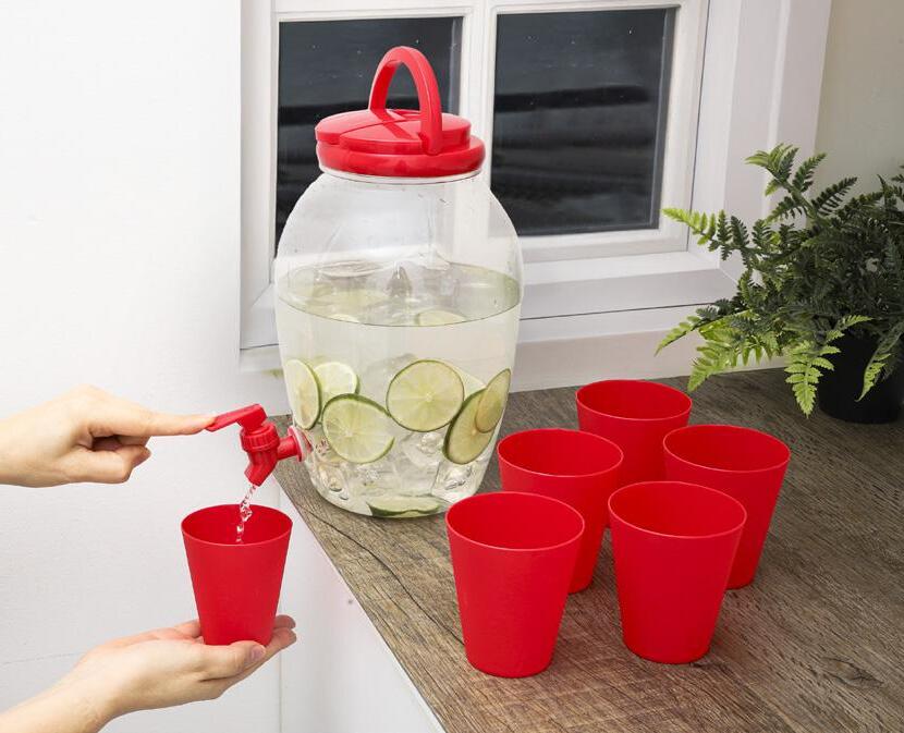 • 1 recipiente de 28 x 11 cm (4,5 L) • 6 vasos de 9 x 8 cm (200 ml)