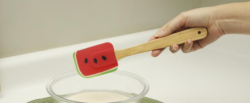 No raya las superficies • Rojo con verde y beige • Madera y silicón • 26 cm