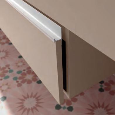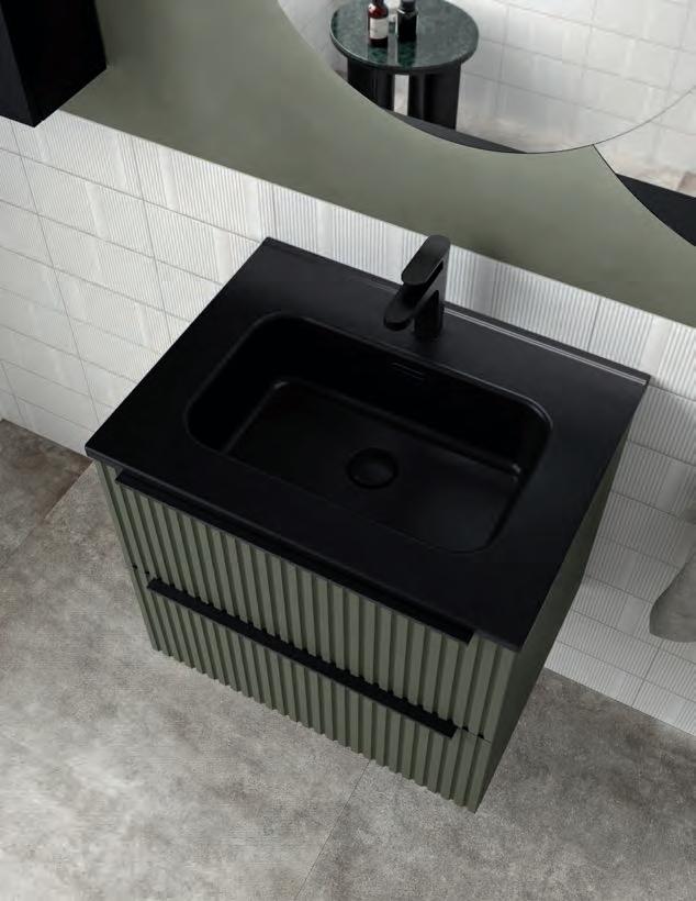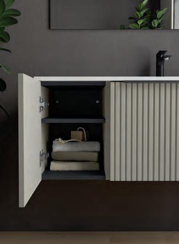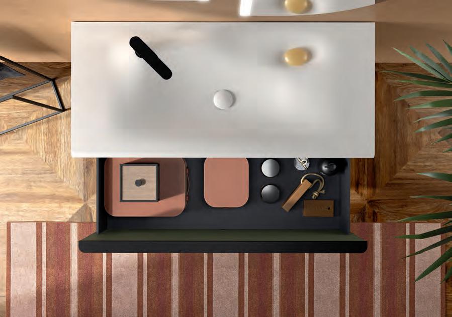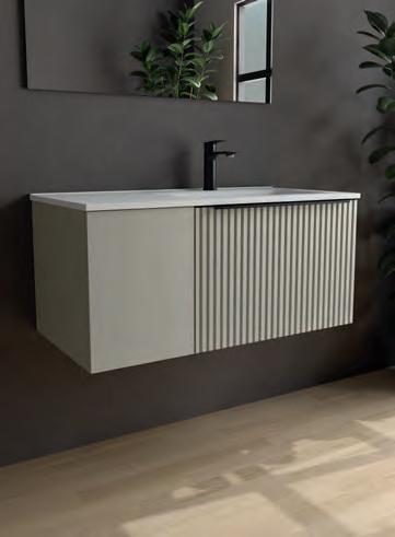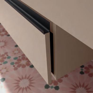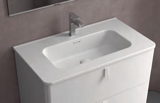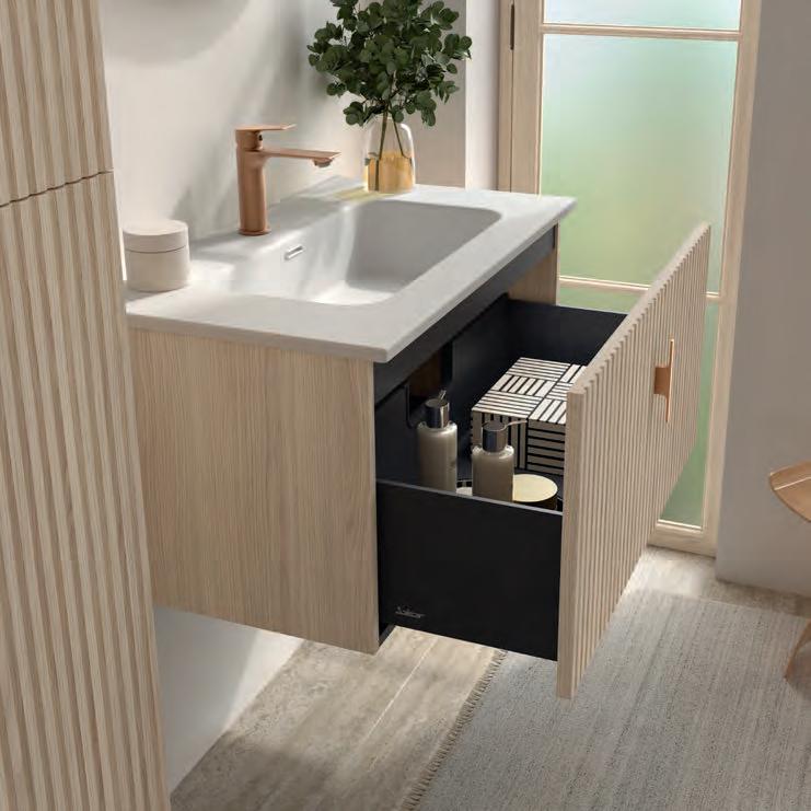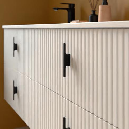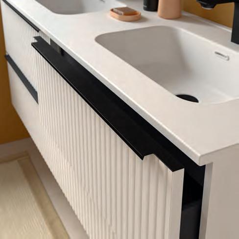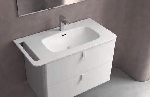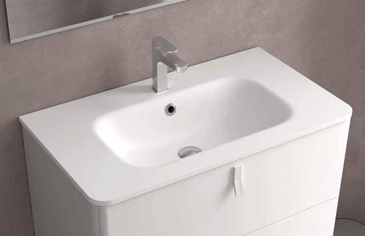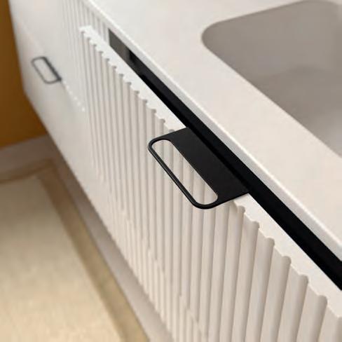 Wastafel, kast en handgreep zijn ontworpen om als één geïntegreerd geheel te functioneren