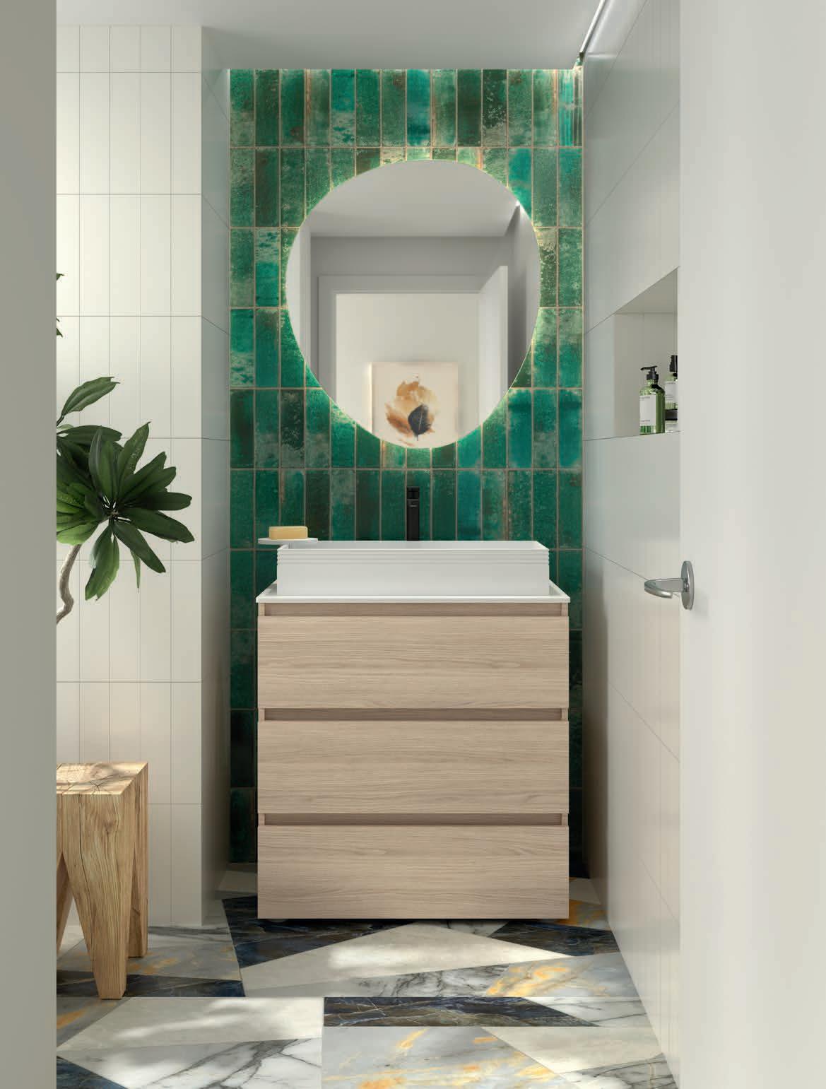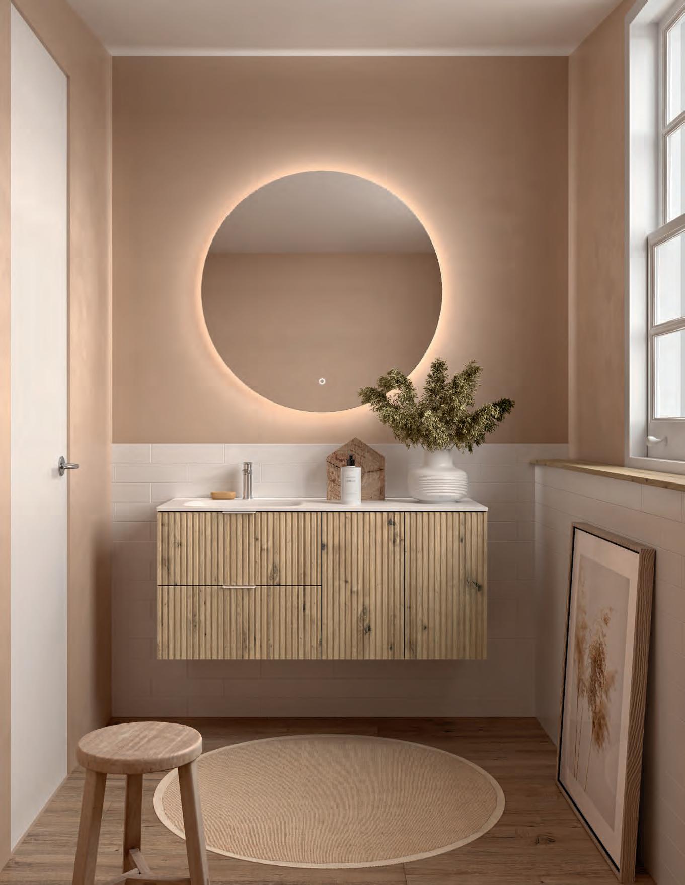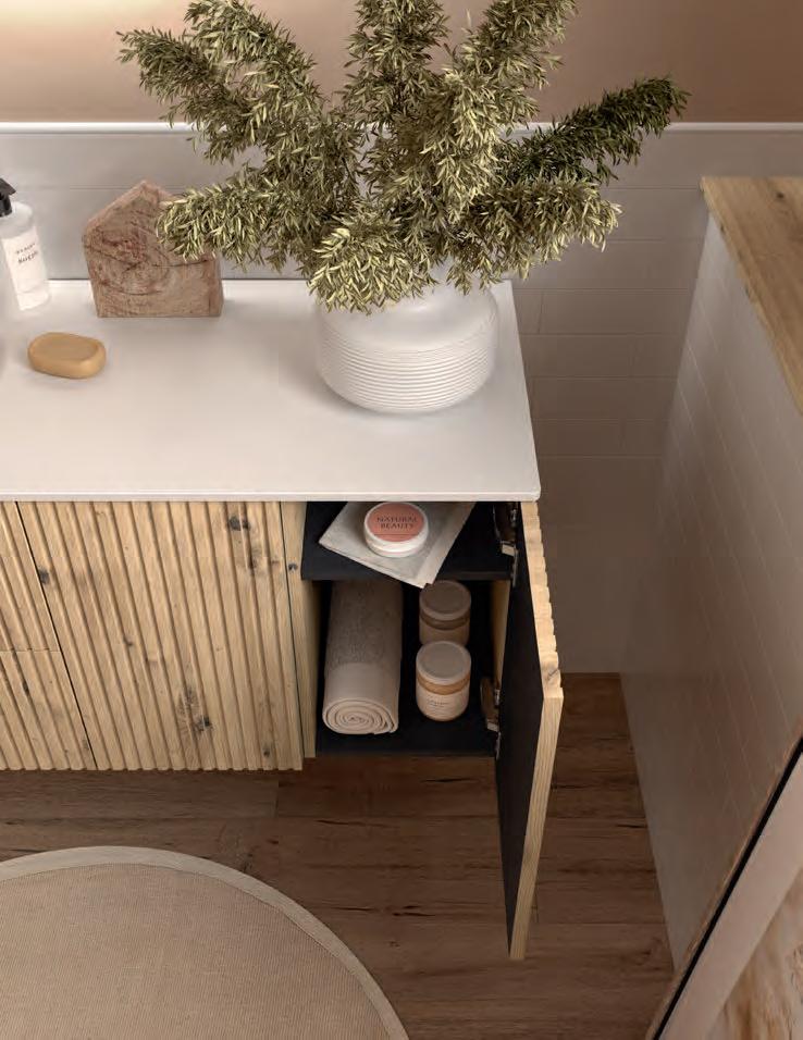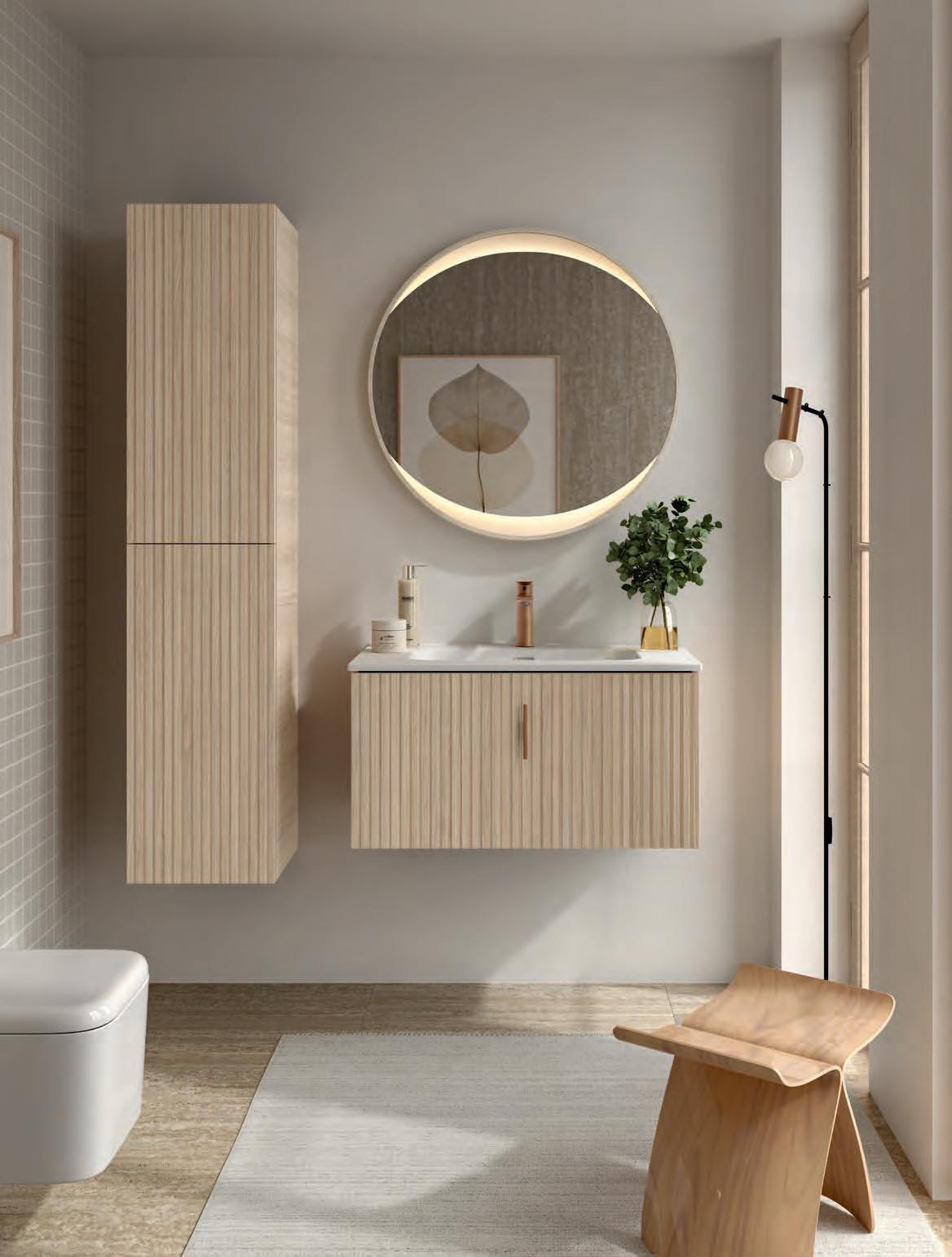 Vervaardigd uit marine kwaliteit berkenmultiplex en afgewerkt met premium natuurlijk fineer, transformeert Mara de badkamer in een ruimte van welzijn, waar ontwerp door de zintuigen ervaren kan worden