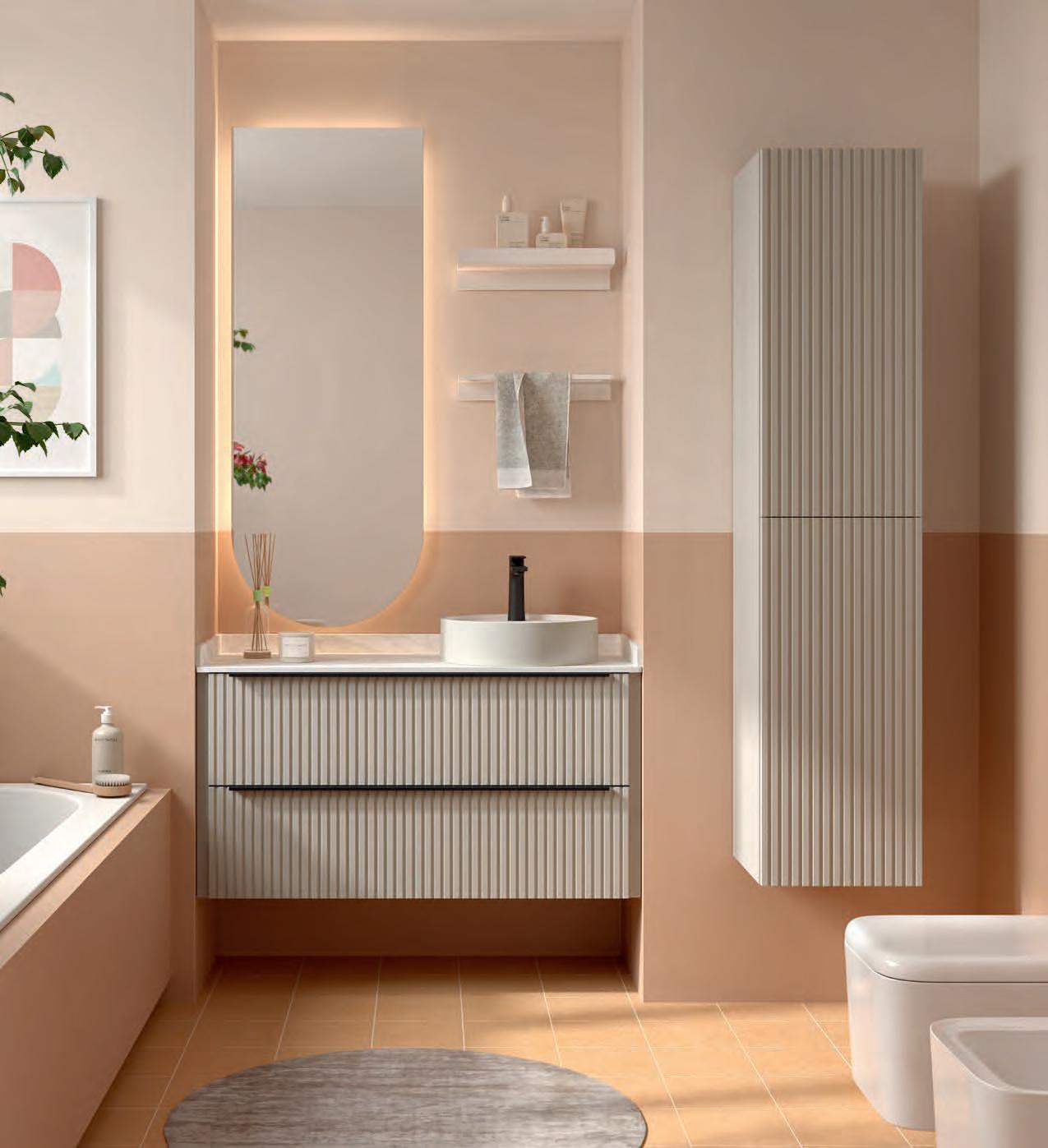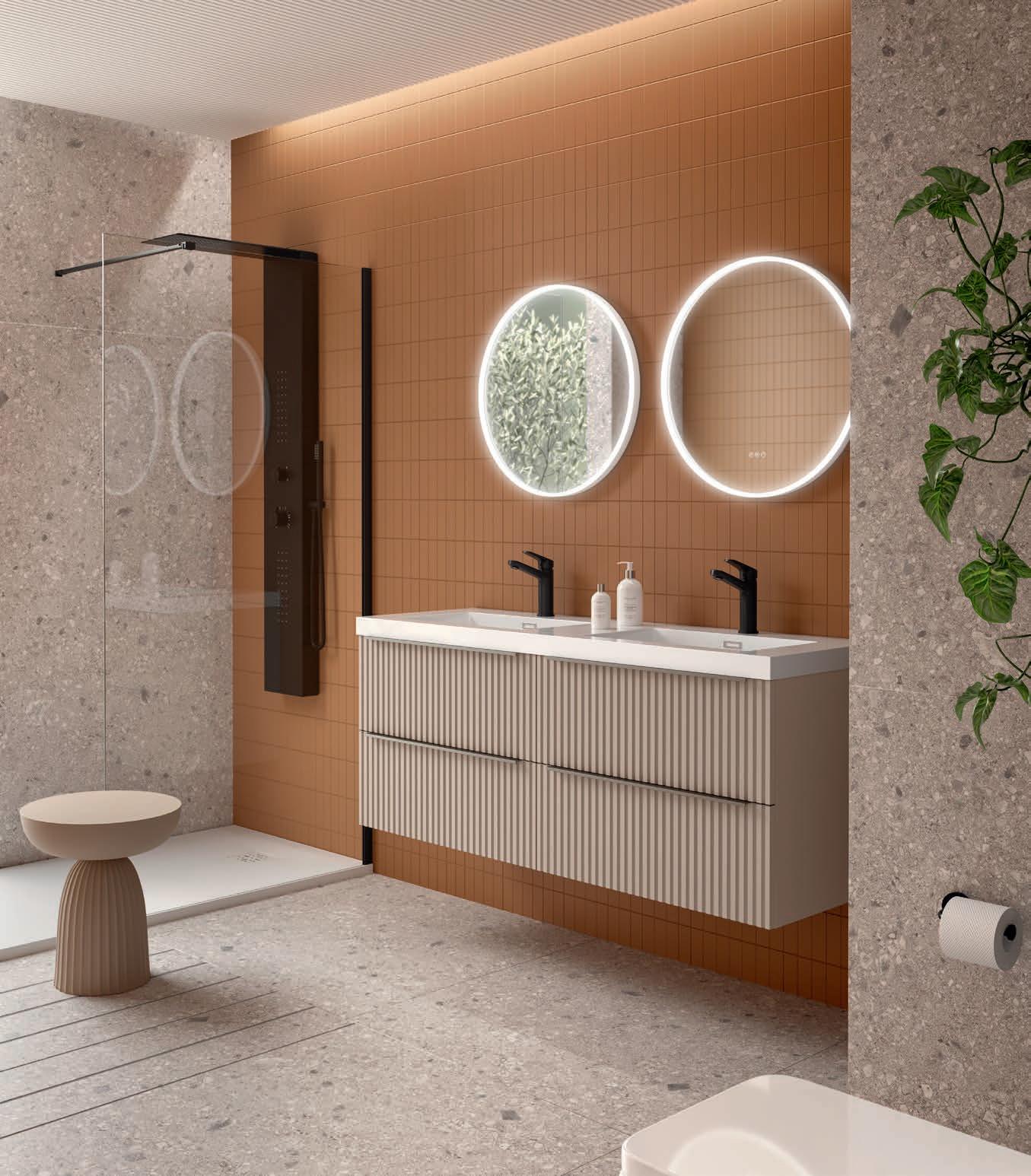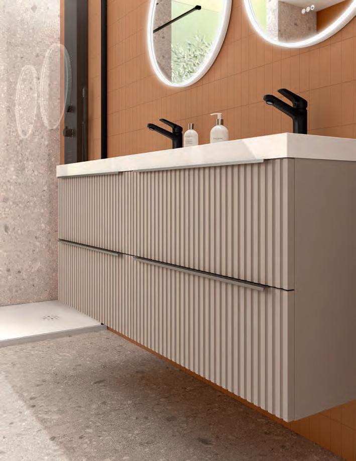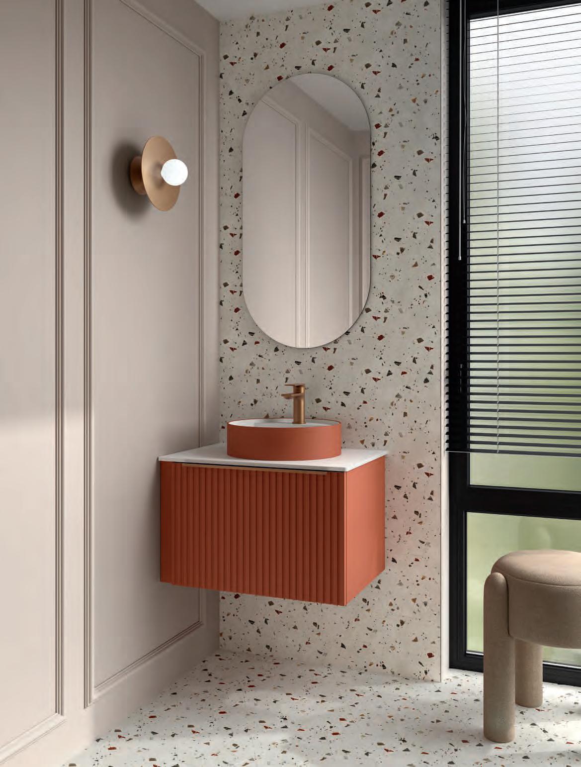 Vervaardigd uit marine kwaliteit berkenmultiplex en afgewerkt met premium natuurlijk fineer, transformeert Mara de badkamer in een ruimte van welzijn, waar ontwerp door de zintuigen ervaren kan worden