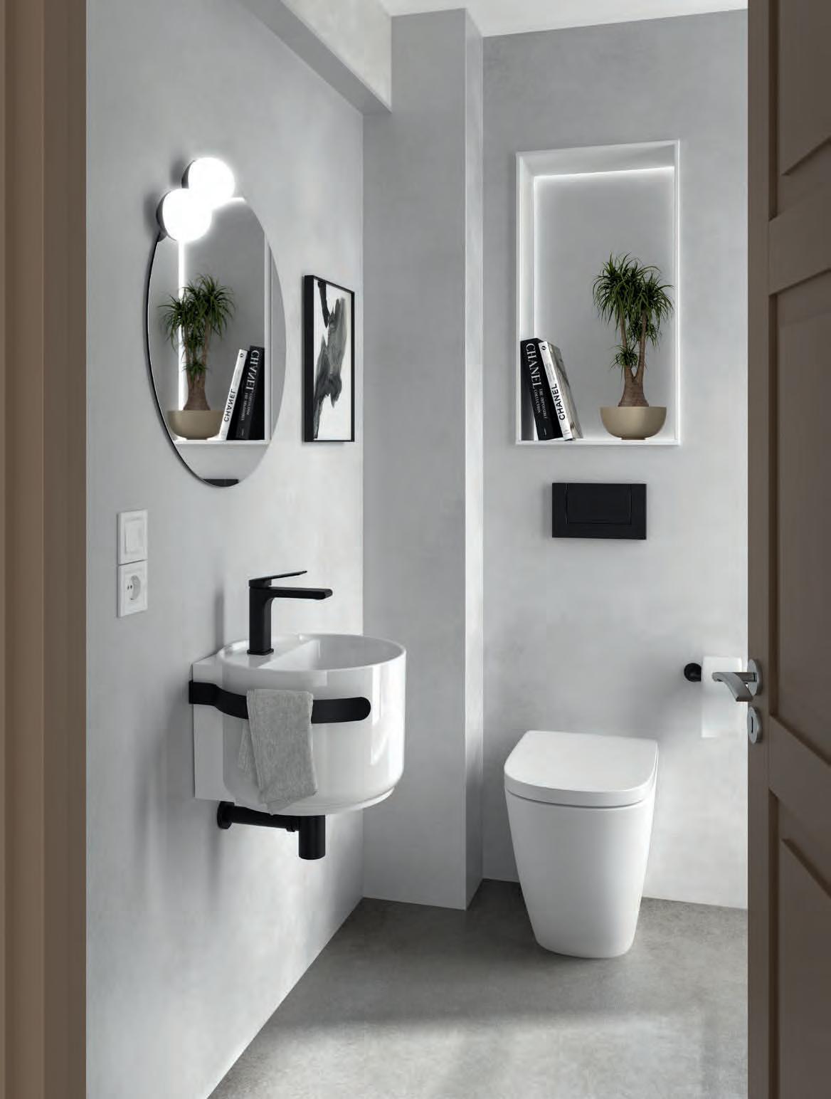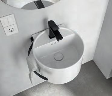 113746 Spiegel GLOBE 800 zwart 385 102307 Set van ruimtebesparende sifon CONEX wit 60 119871 Clicker/open afvoerplug ELIA solid surface mat wit 112