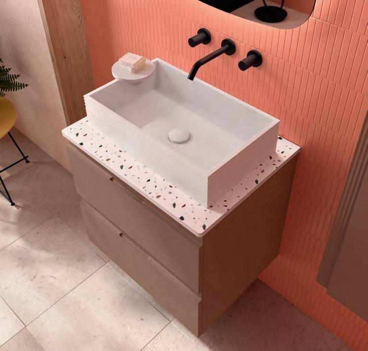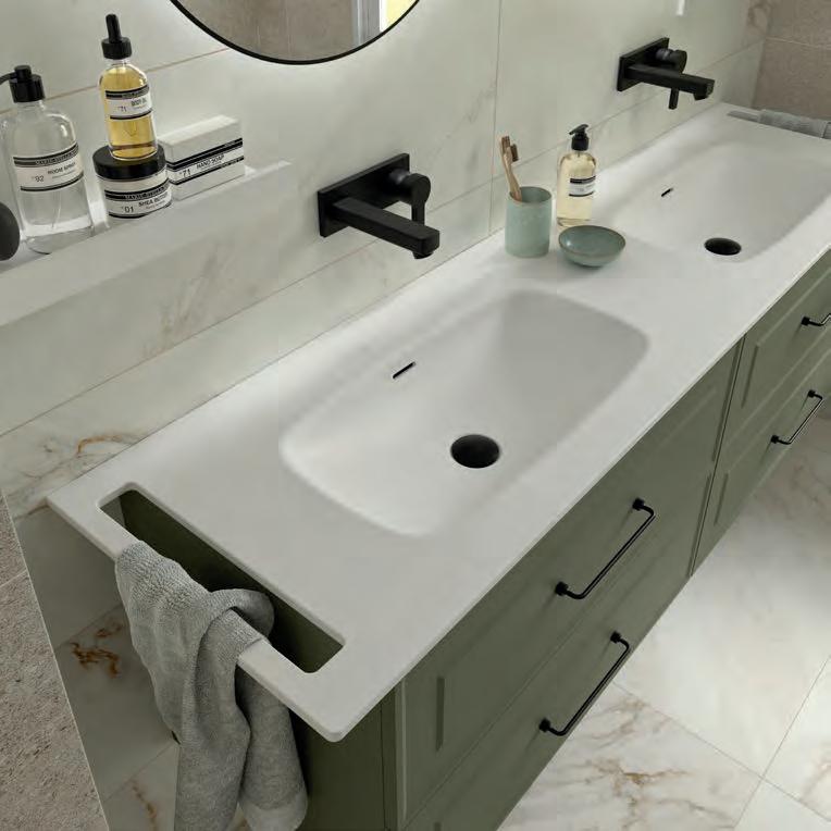 Combineer het met de nieuwe Eliaafvoer in solid surface. Zie pagina 304