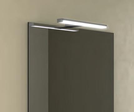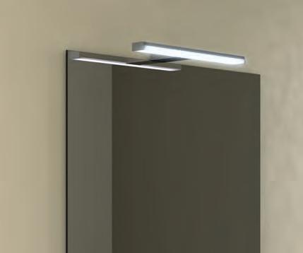 Bevestigingssysteem in meerdere posities voor aanpassing aan spiegel of meubel.