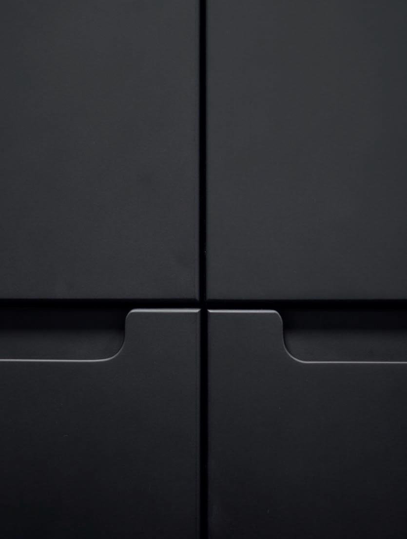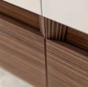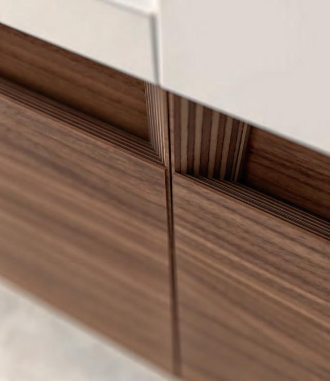 De fronten, gekenmerkt door strakke lijsten en zijdezacht gelakte afwerkingen, creéren een serene en verfijnd samenspel van ruimtes.