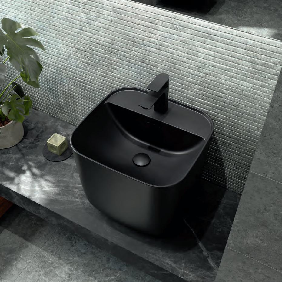 De Ocean wastefel is verfijnd ontworpen met een precieze binnen “curve die het water moeiteloos en gecontroleerd geleidt, voor een vloeiende stroom zonder spatten. Geïnspireerd door de natuurlijke beweging van de zee, creëert de vorm een optimale doorstroming vanuit de kraan en biedt een serene, schone en harmonieuze gebruikservaring. Het ontwerp wordt gecompleteerd door een minimalistische, lineaire hendel – een elegante scheidingslijn tussen vloeibare en solide elementen.