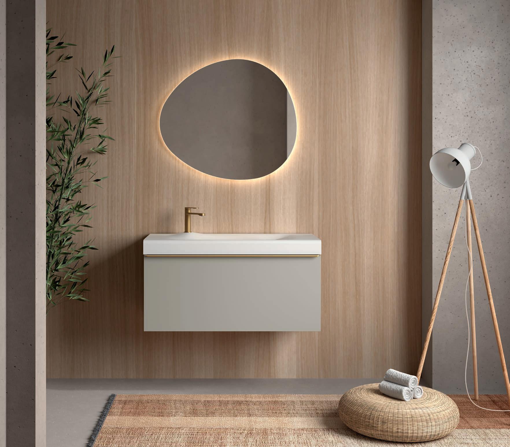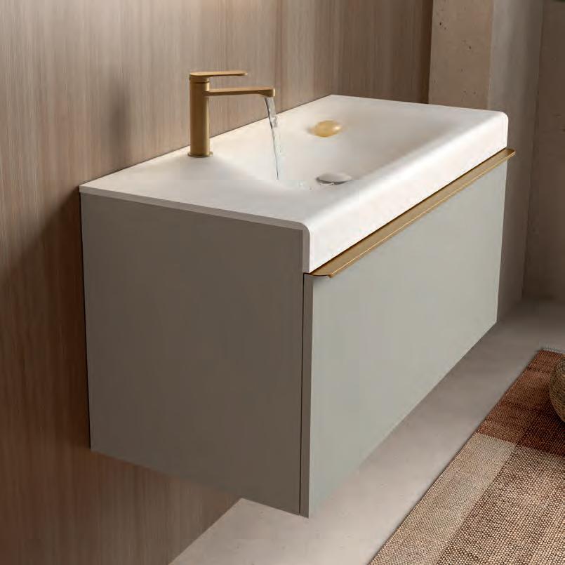 OCEAN HORIZON 1000 MOON GREY € 120594 Onderkast hangend OCEAN 1000 Moon grey 644 121432 Handgreep OCEAN 1000 matt gold 34 120586 Wastafel OCEAN 1000 solid surface mat wit 804