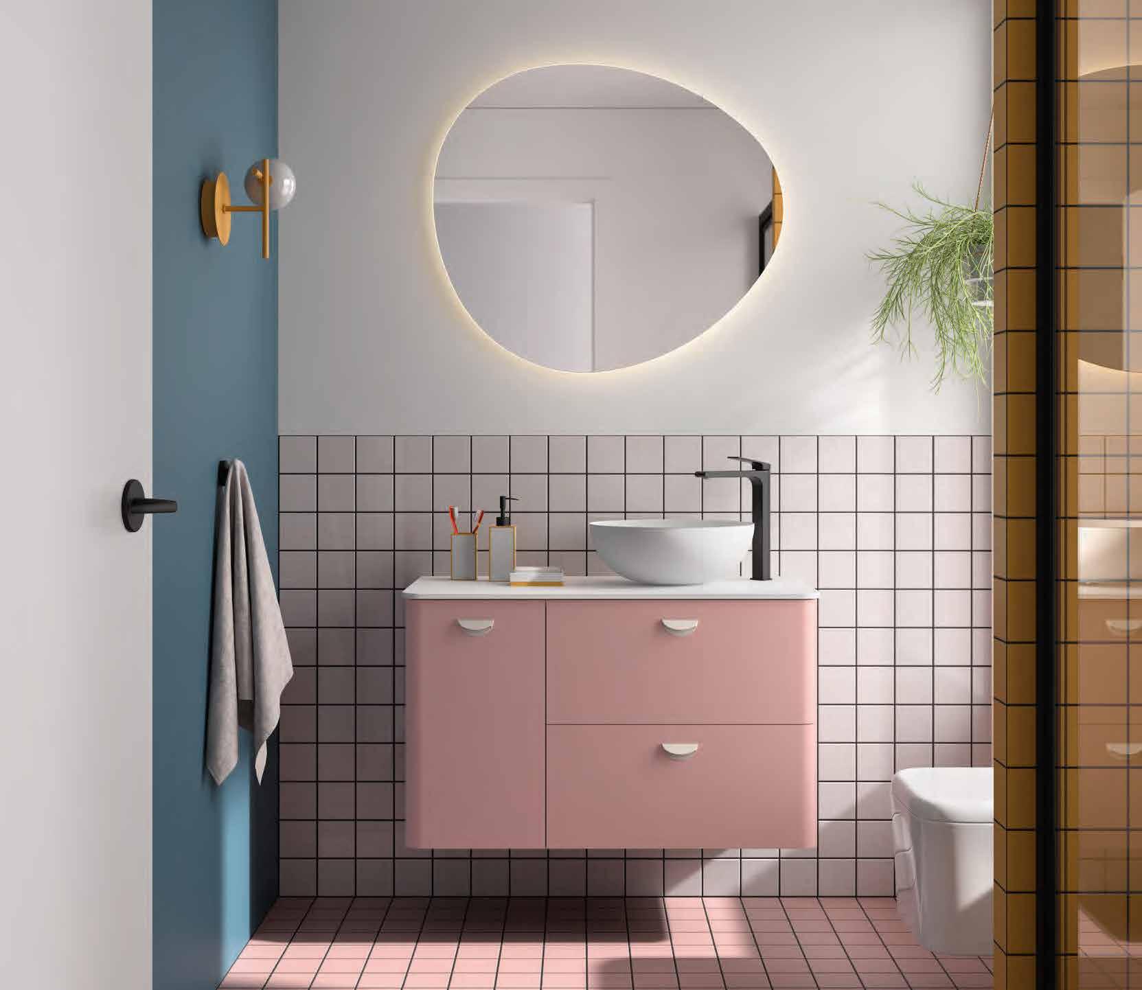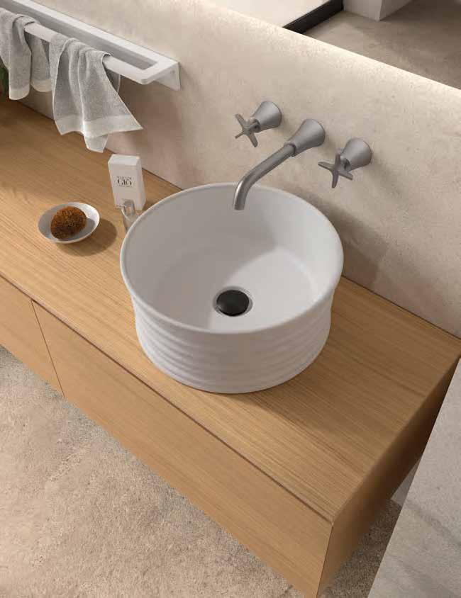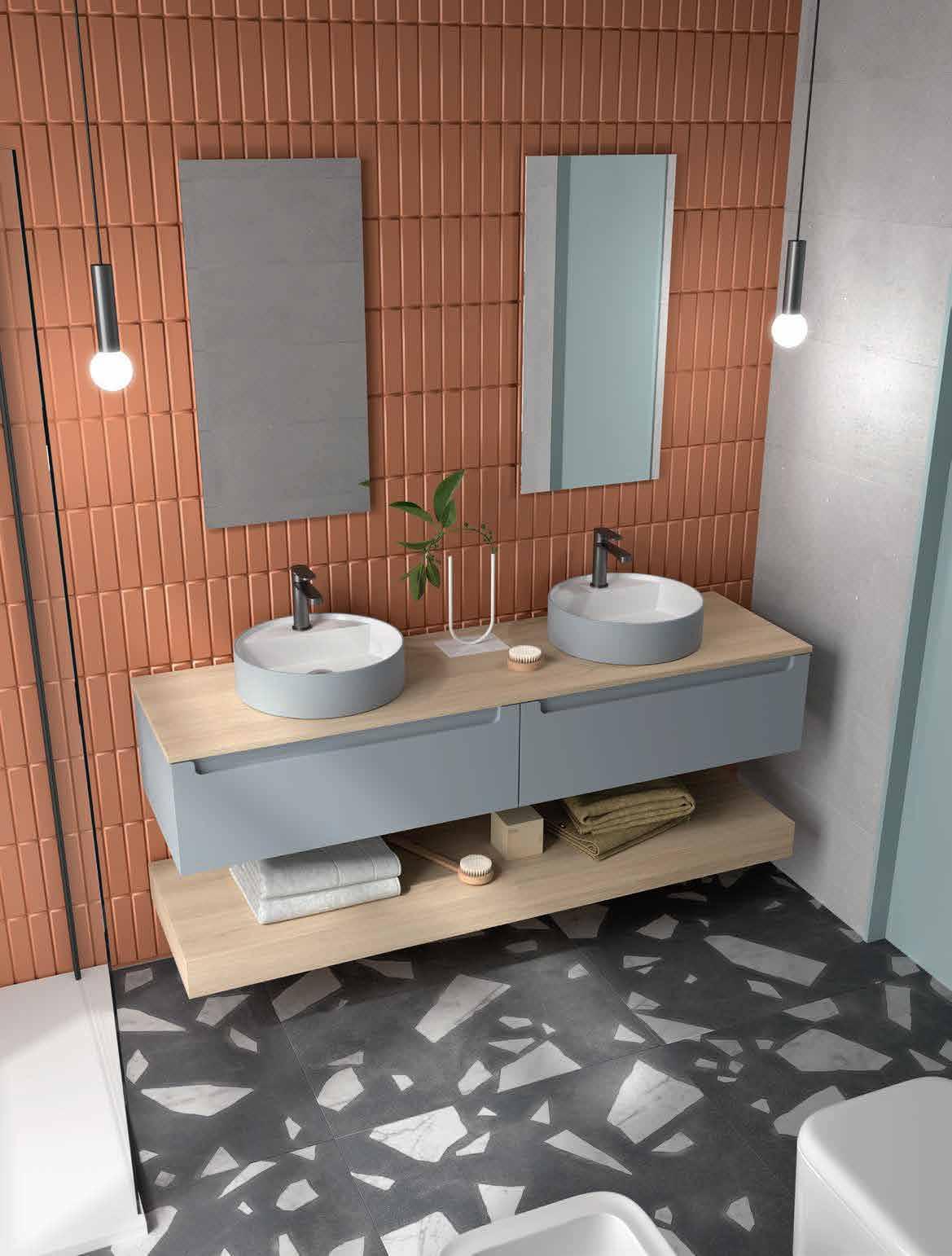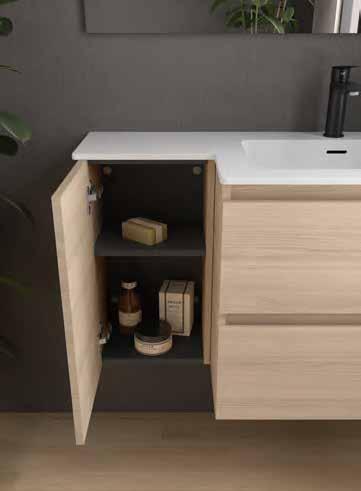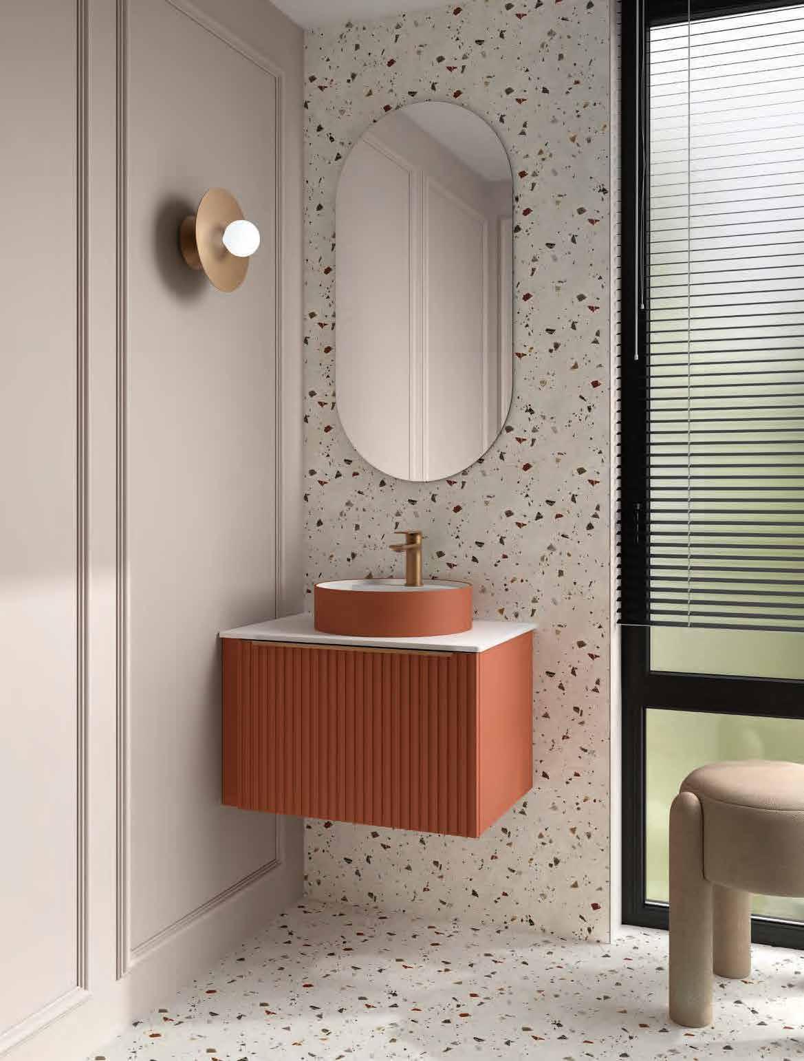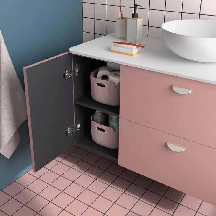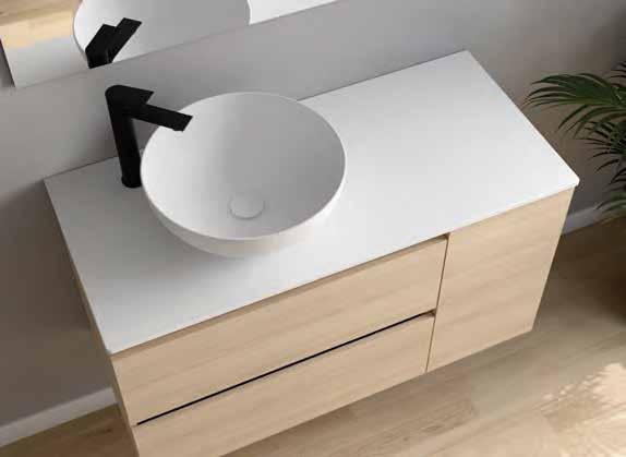 Bancada em melamina de 16 mm ou 35 mm, com opção de lavatório de pousar