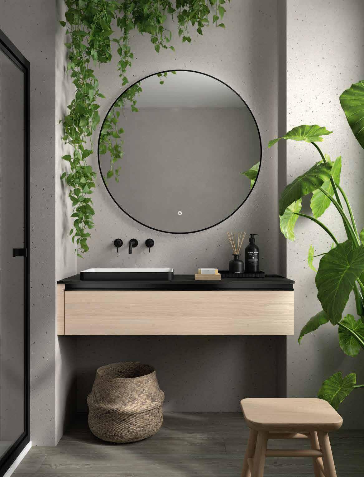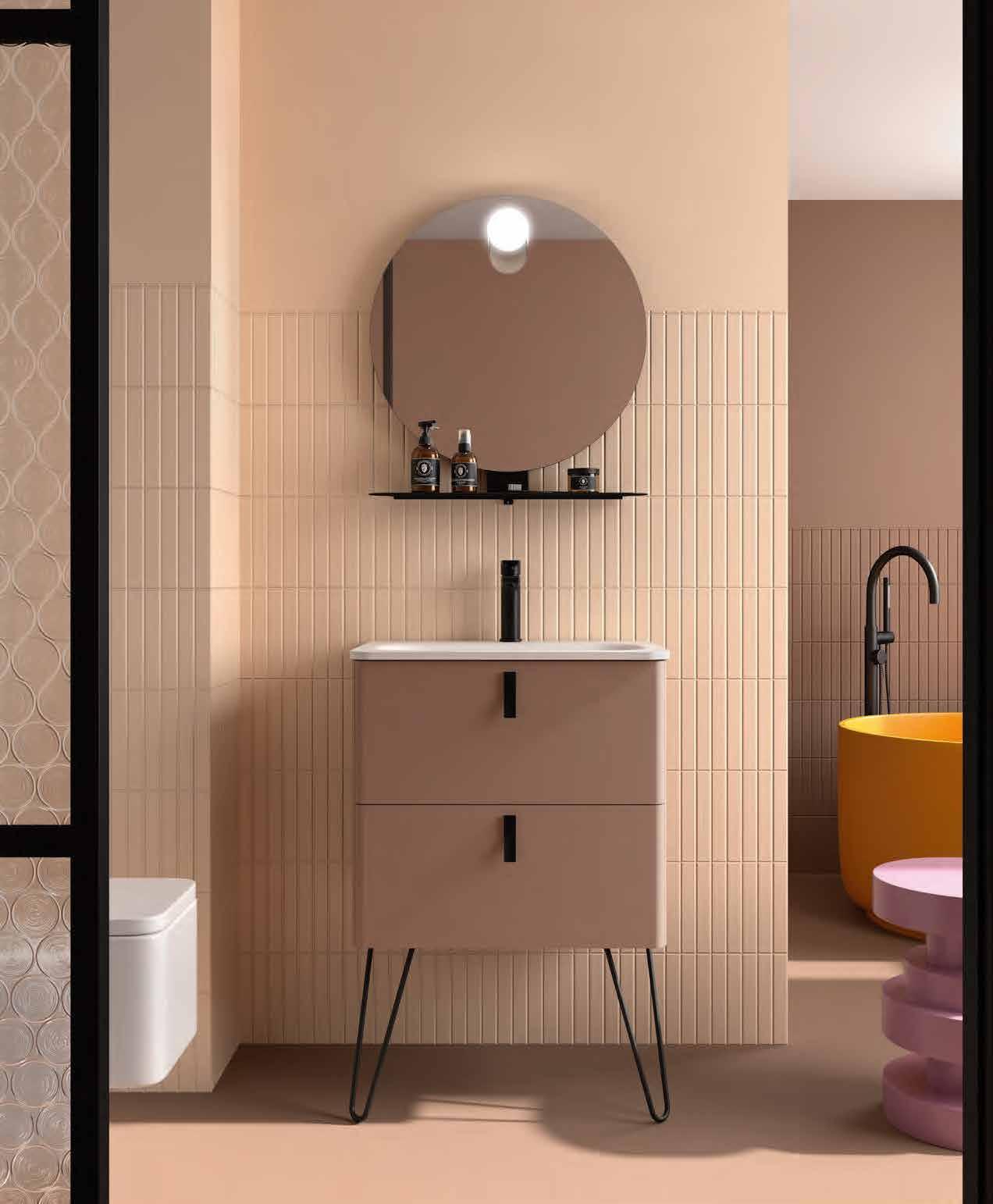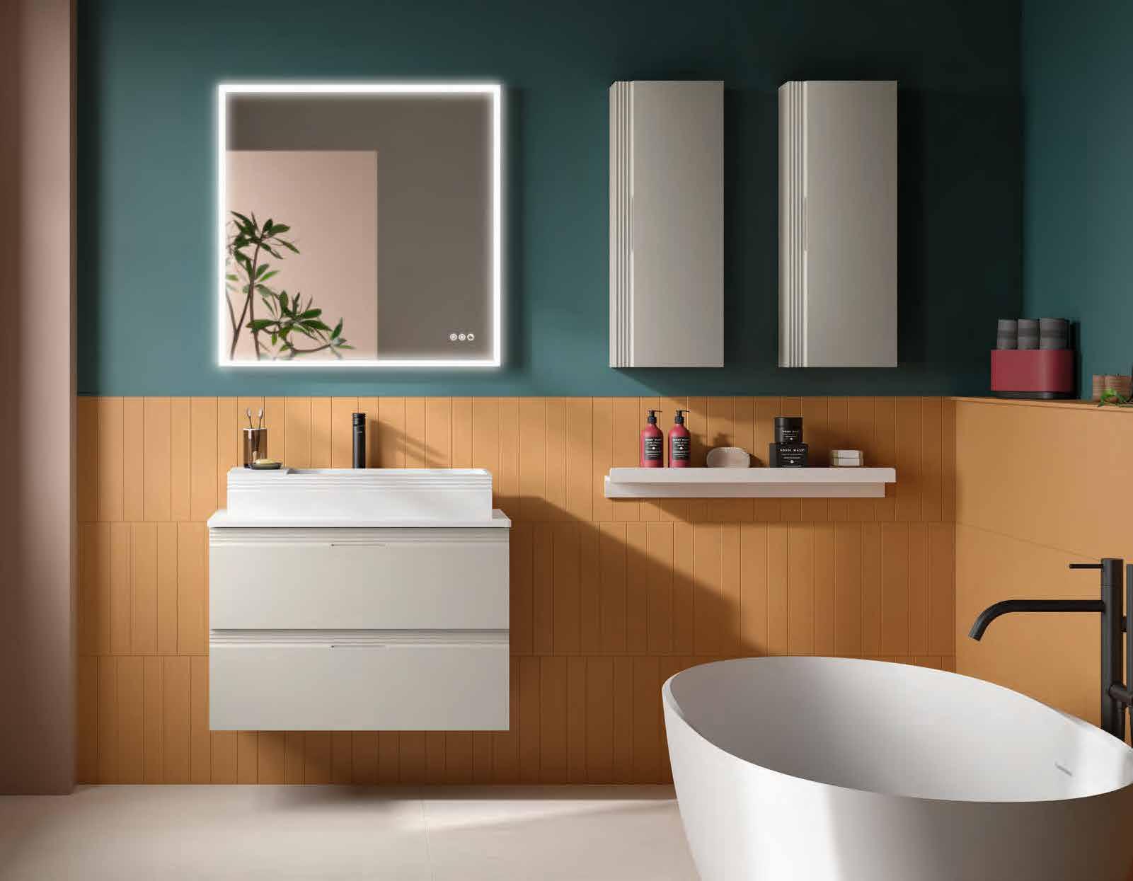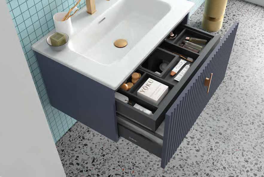 Bancada em melamina de 16 mm ou 35 mm, com opção de lavatório de pousar