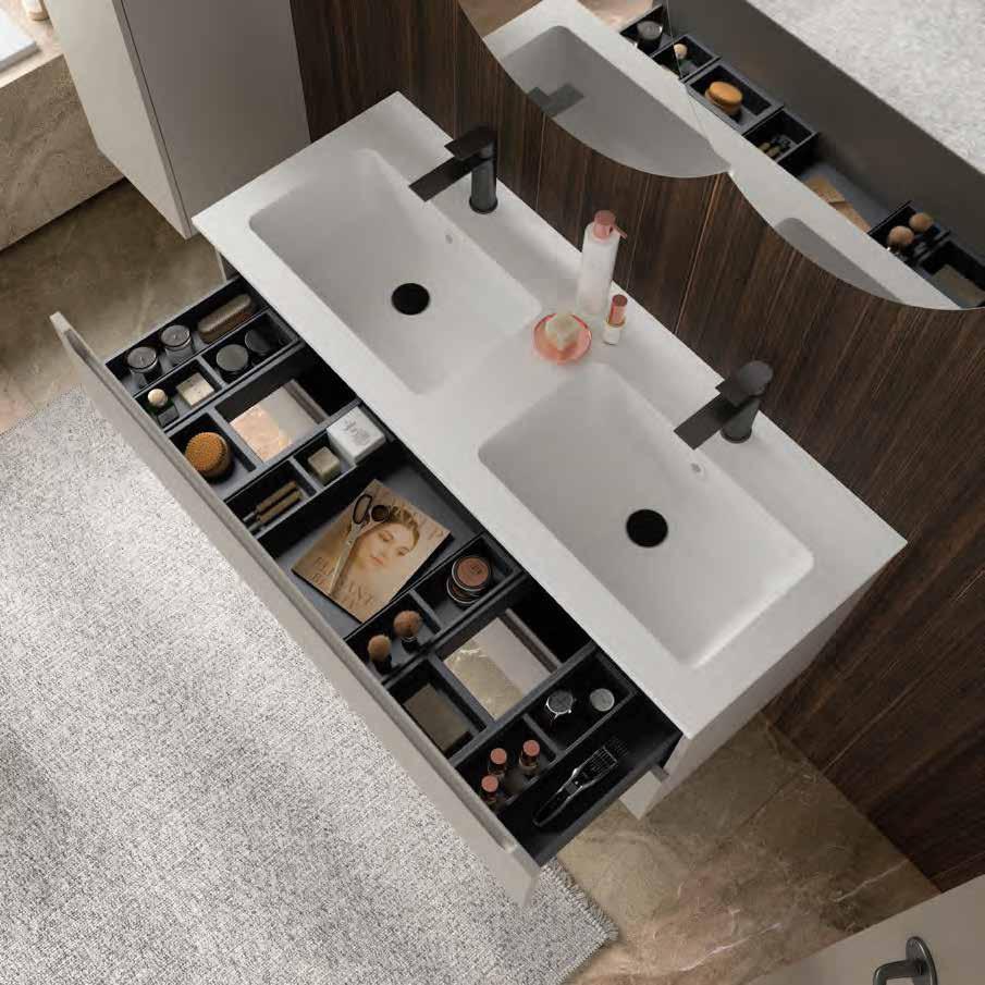 As cores dos acabamentos dos diferentes materiais: madeira, vidro, mármore e perfis de divisórias que figuram no catálogo são sempre aproximadas visto que estão sujeitas ao processo de impressão e variação de cor pela iluminação fotográfica. Equivalências RAL, PANTONE e NCS aproximadas.