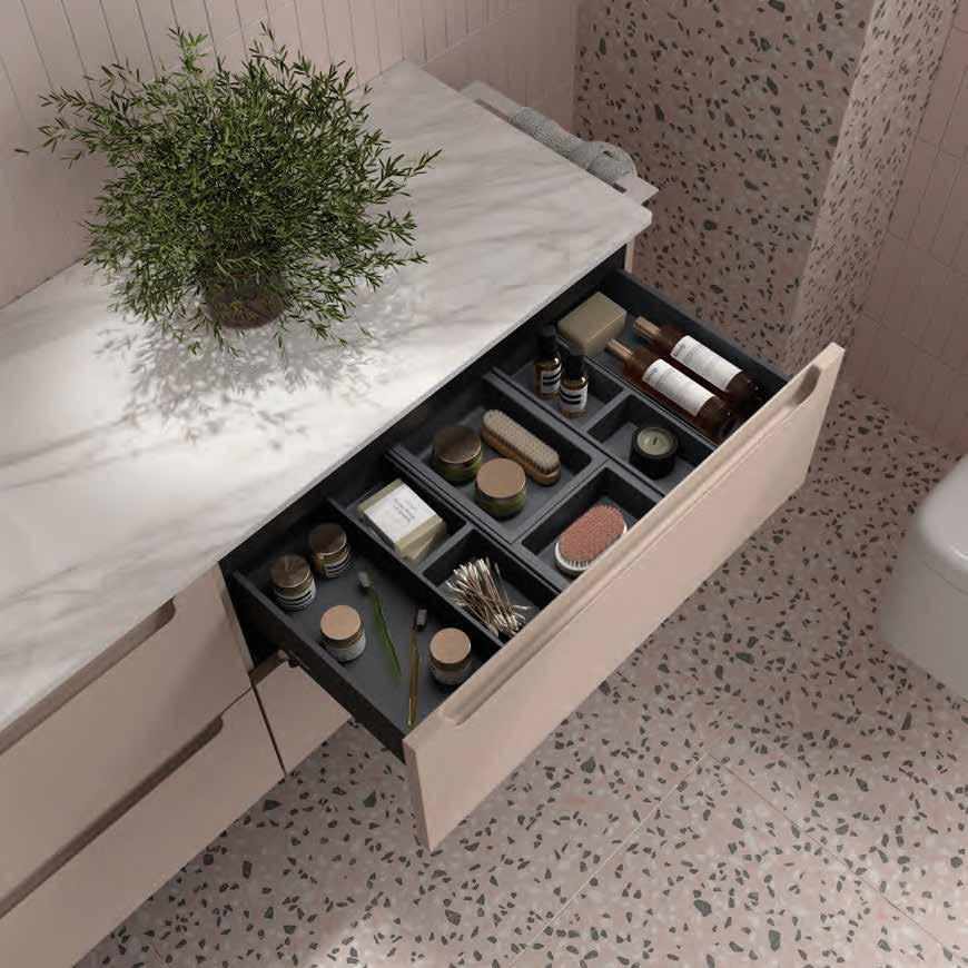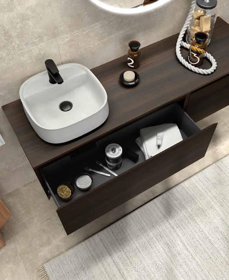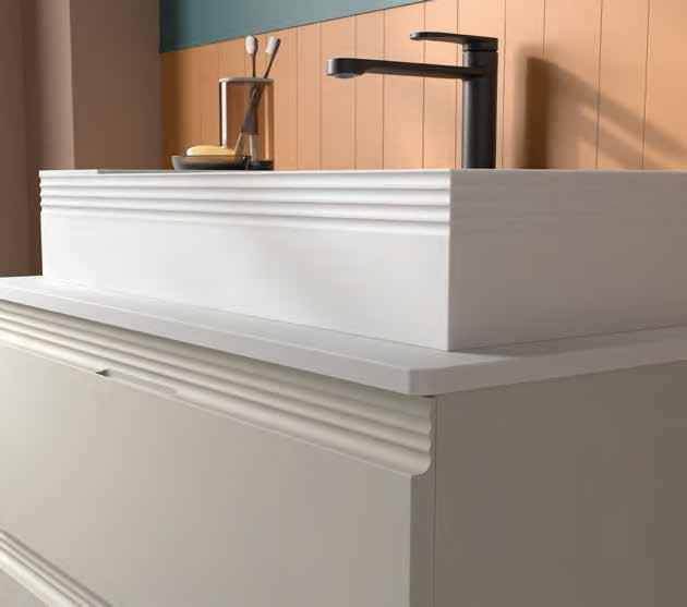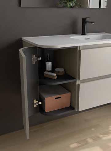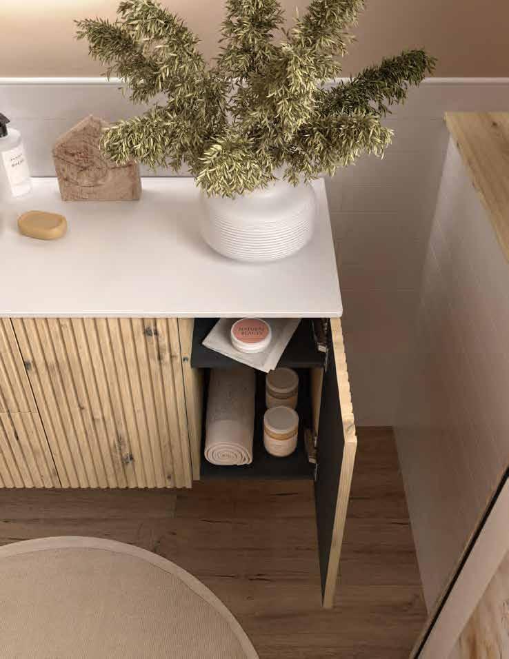 Available in seven carefully curated nishes, the series o ers o set washbasin options thanks to the MAM Coqueta and Alliance auxiliary units, allowing for versatile and functional compositions where beauty and ergonomics merge in perfect harmony.