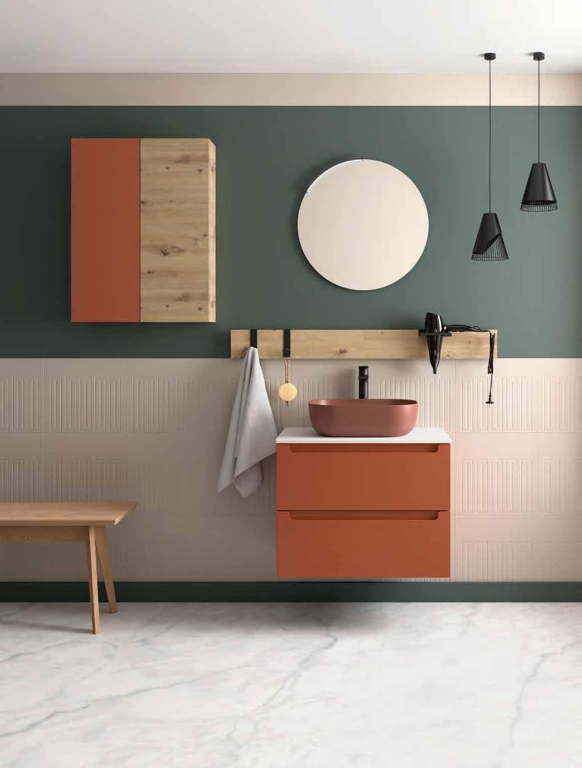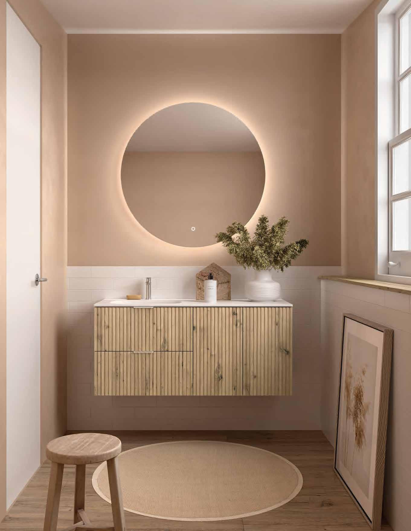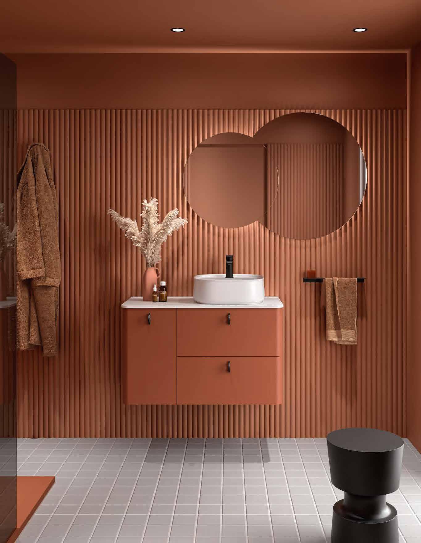 Available in seven carefully curated nishes, the series o ers o set washbasin options thanks to the MAM Coqueta and Alliance auxiliary units, allowing for versatile and functional compositions where beauty and ergonomics merge in perfect harmony.