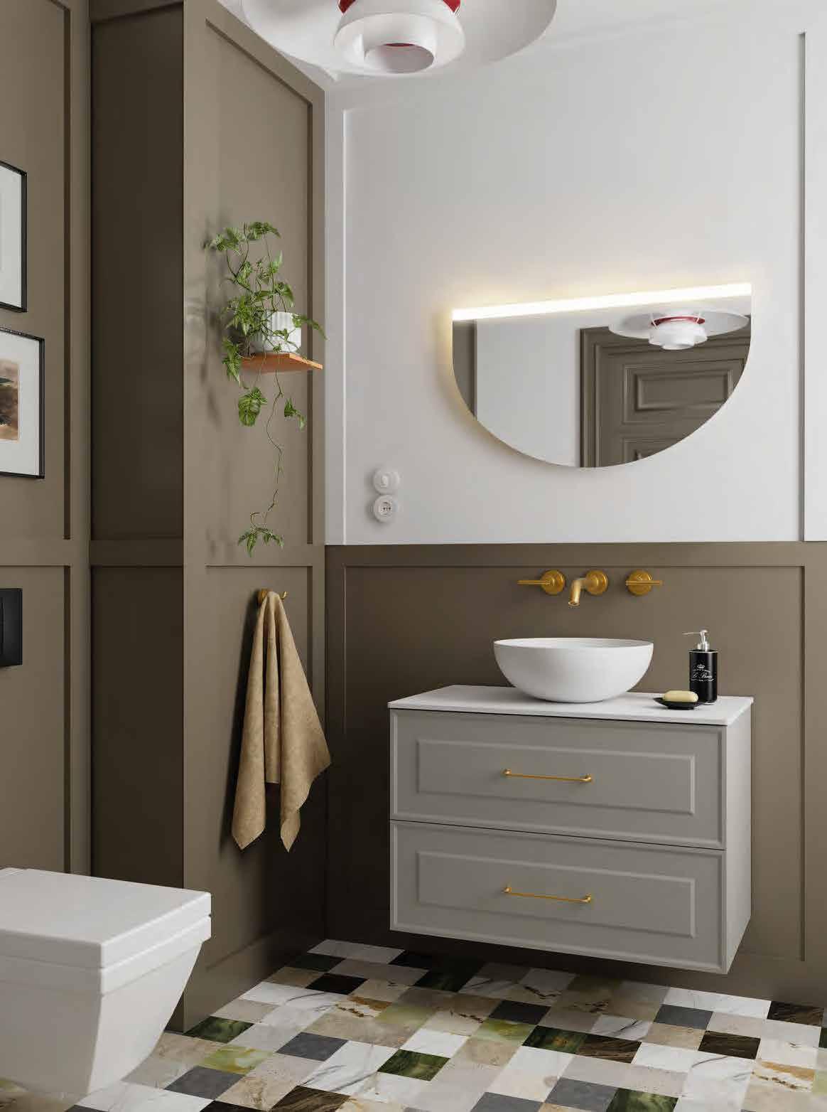 e Emma collection stands out not only for its character and exclusivity, but also for its adaptability. In addition to the Emma washbasin, the series is compatible with all washbasin options in the Salgar catalogue, o ering versatile solutions for di erent styles, spaces, and functional needs.