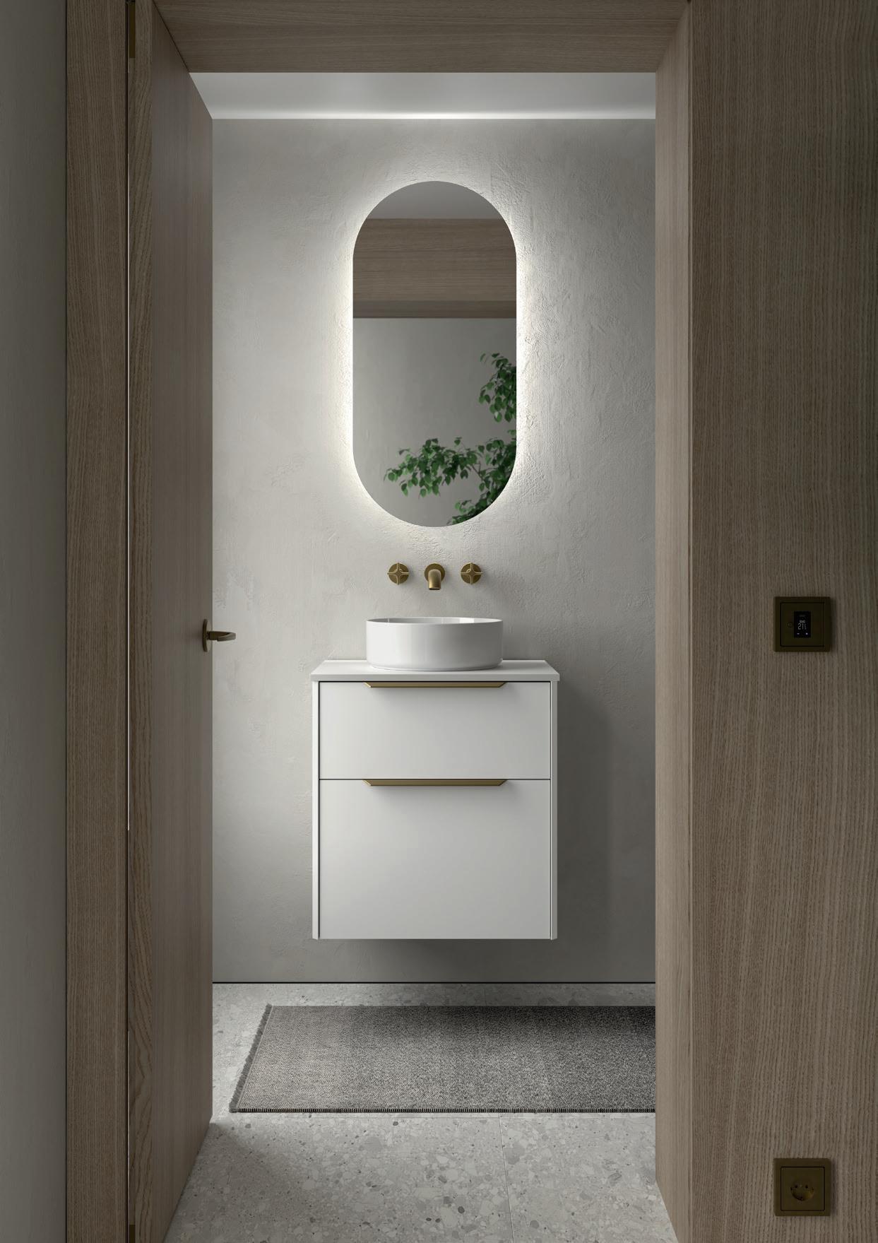 Avec la série NOJA, trouvez des solutions pour tous vos besoins : des meubles de 600 à 1000 mm de largeur, suspendus ou à poser, disponibles en sept finitions couleur et, trois finitions aspect bois, avec des plans vasques, des vasques à poser et, des miroirs qui multiplient les possibilités. Fonctionnelle, polyvalente et pleine de style, chaque détail de votre salle de bains vous ressemble.