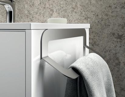 • 1 support métallique en finition laque blanche, avec Porte-serviettes intégré
