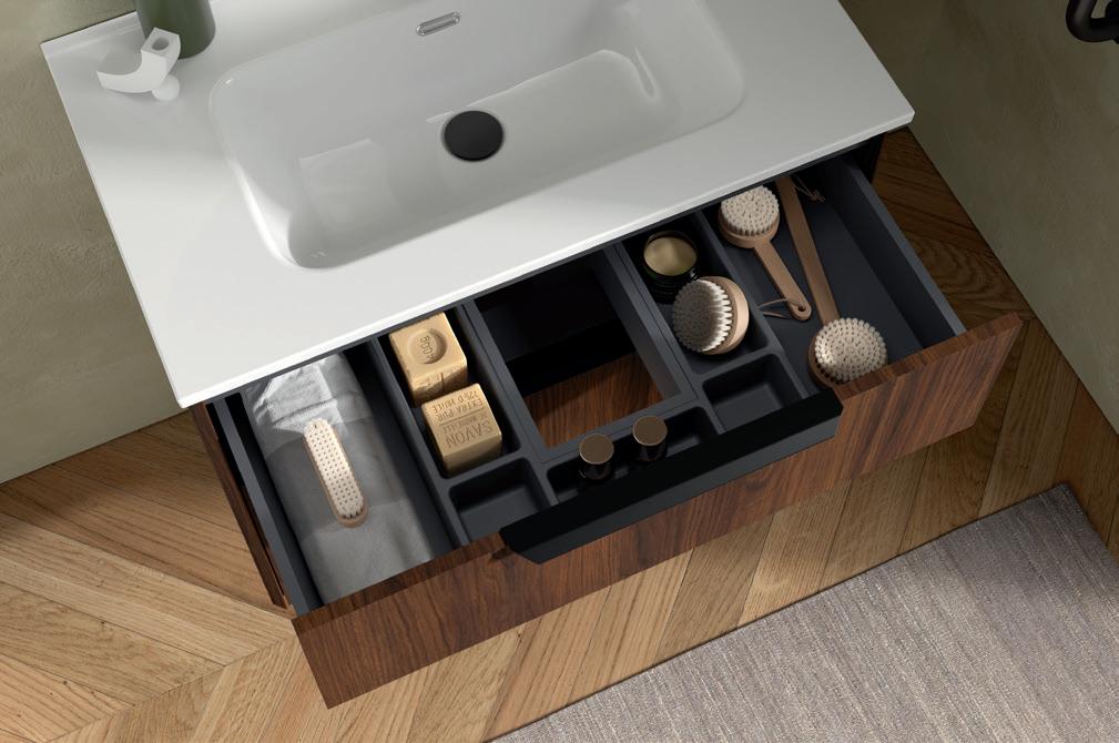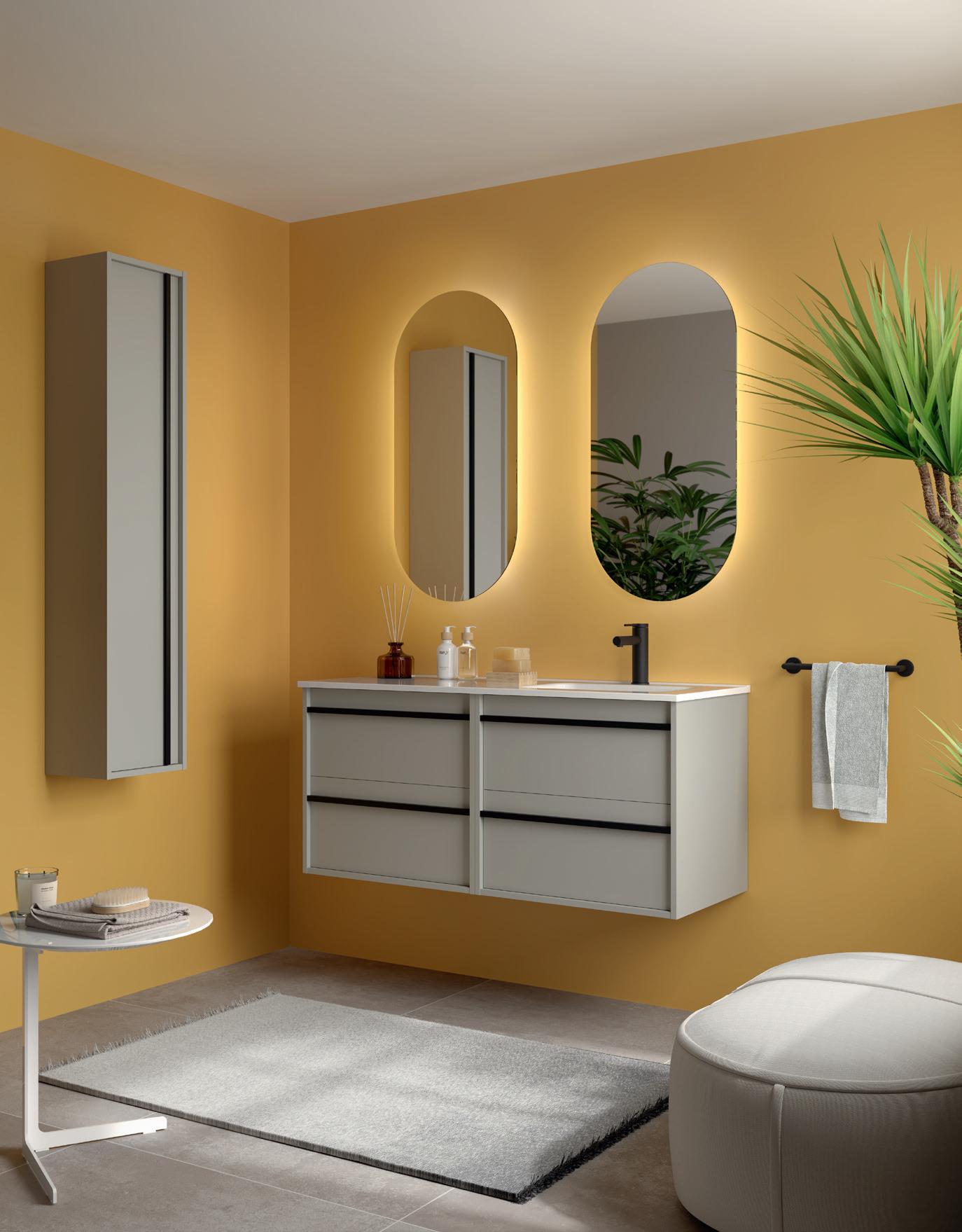 La série NOJA 120 propose de nouvelles options pour que chaque salle de bains trouve son équilibre parfait : 4 portes, 4 tiroirs ou mix de 2 tiroirs et 2 portes. Différentes configurations optimisent l’espace de rangement tout en s’adaptant à vos besoins fonctionnels et à votre style personnel.